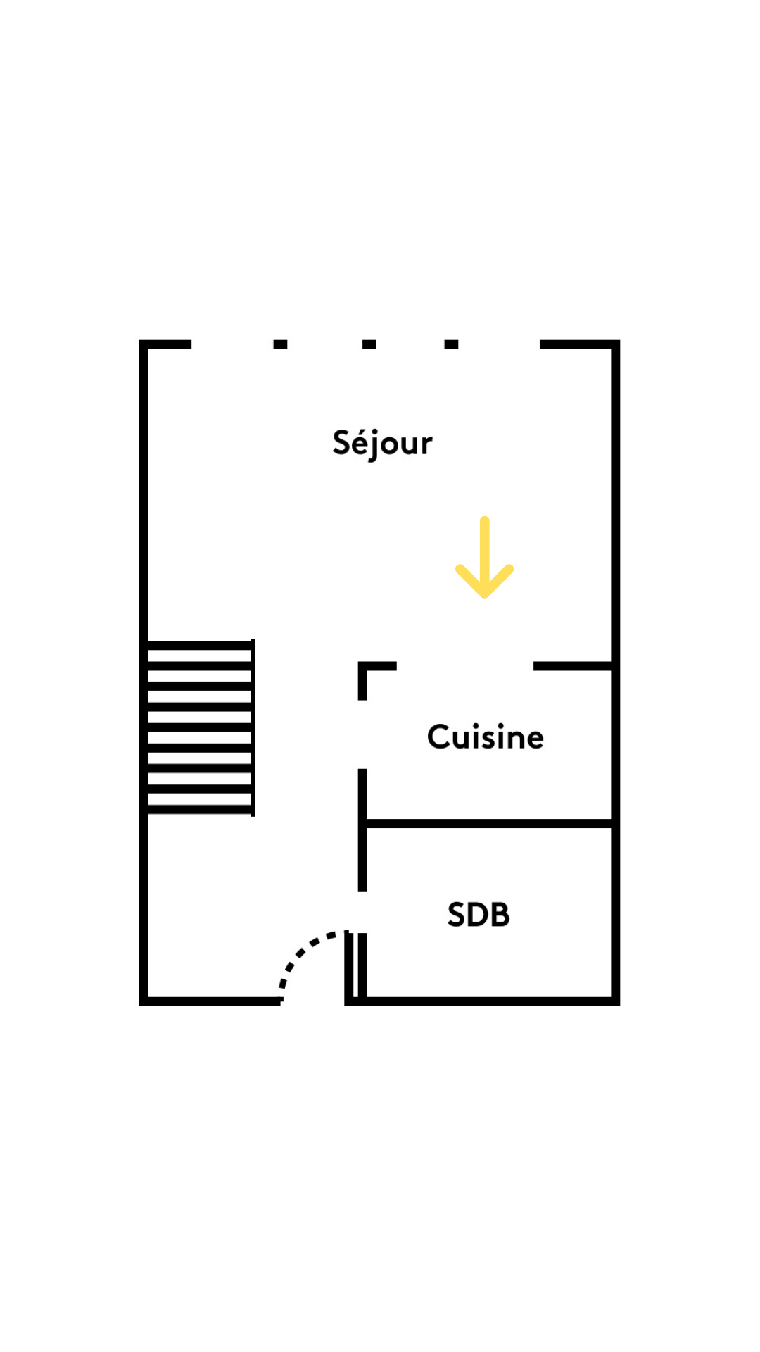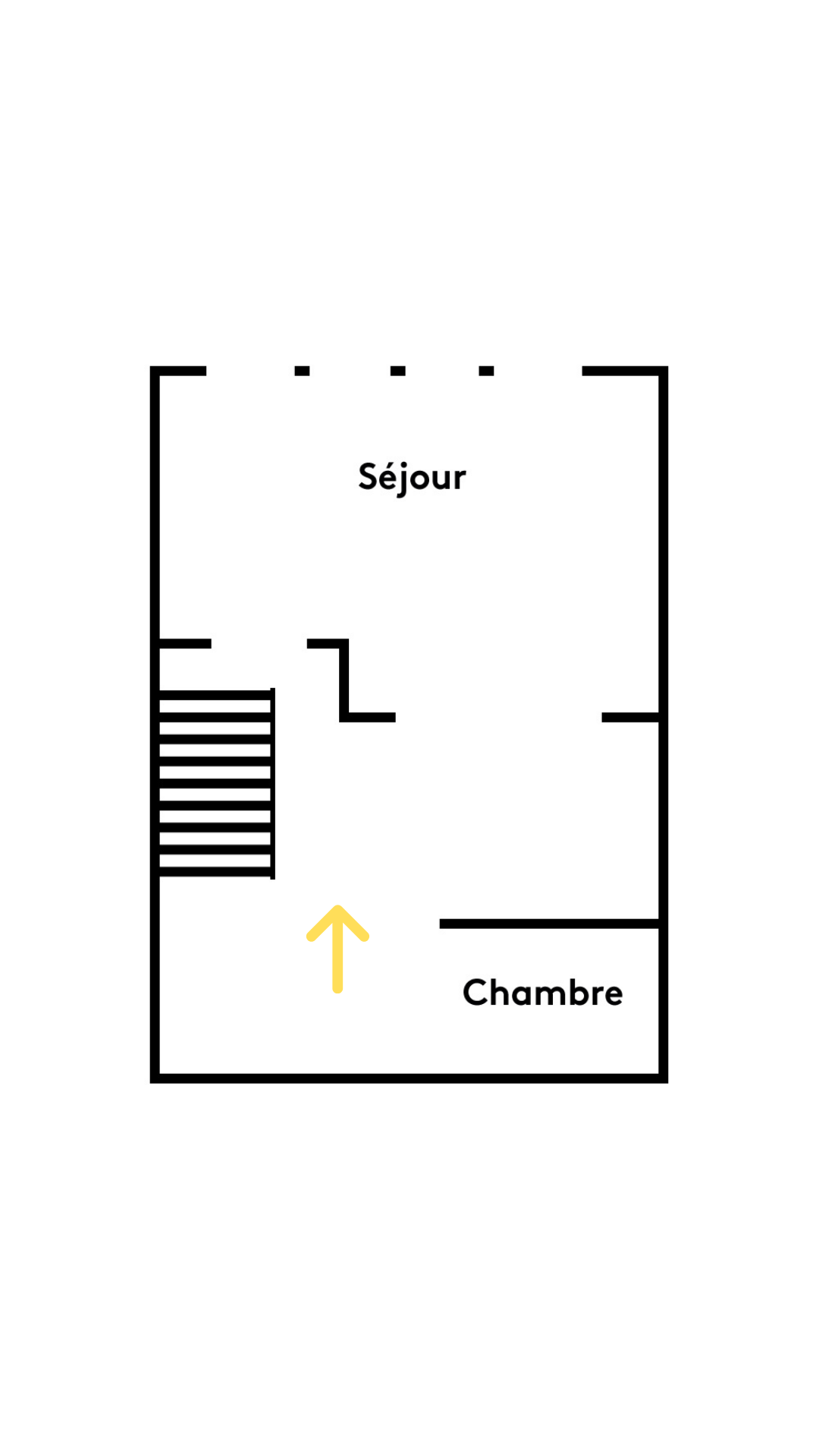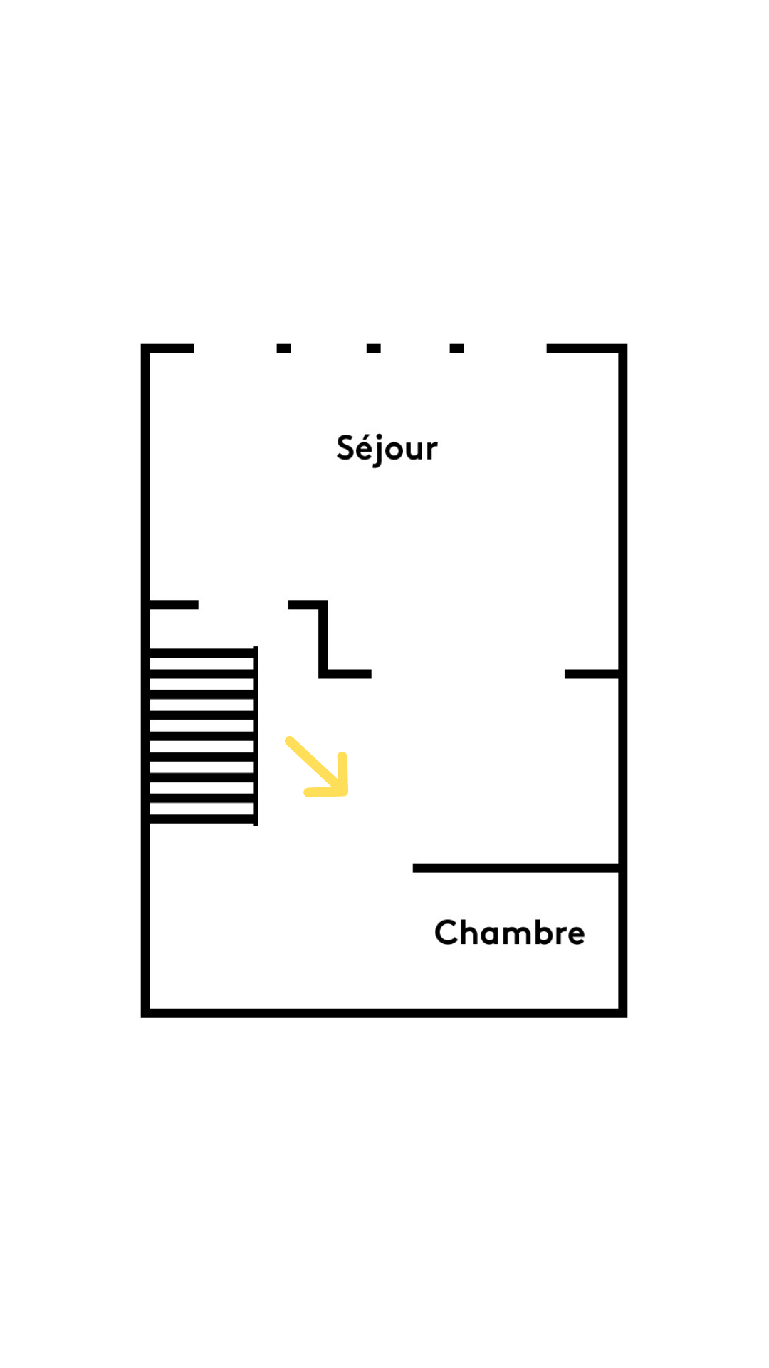 Vue globale des volumes de l’appartement. Direction l’étage !