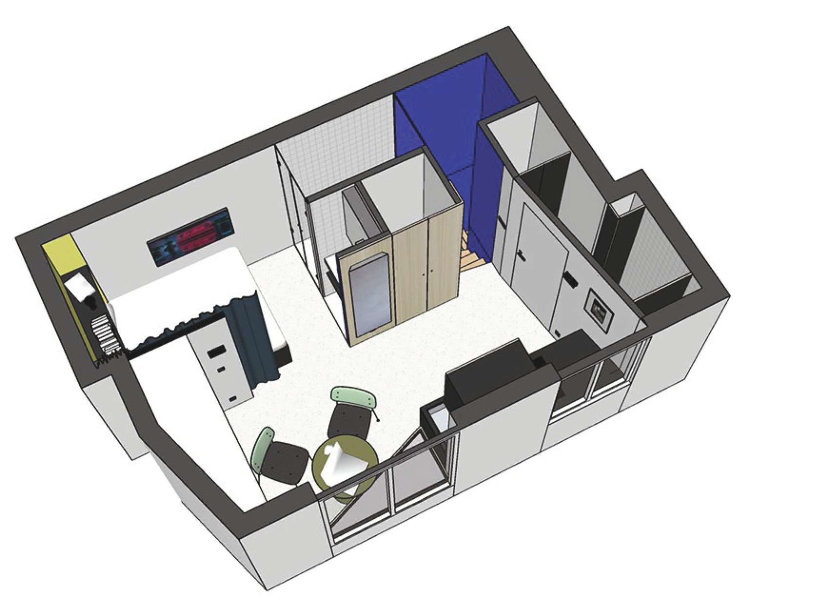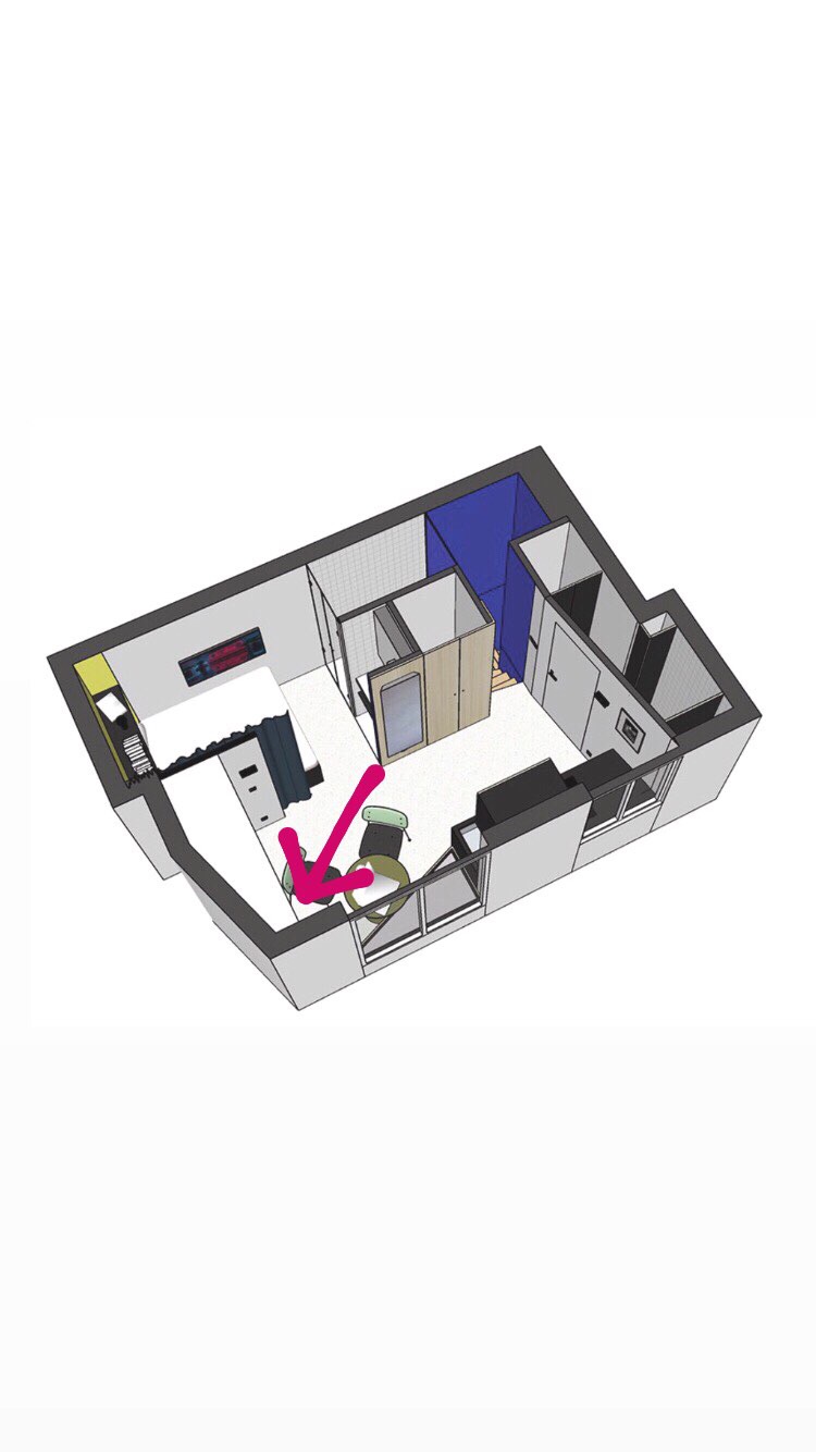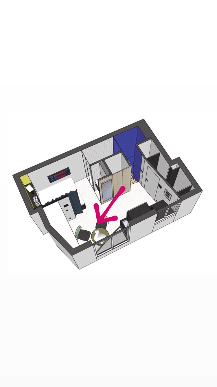 La couleur Klein IKB de chez Ressource fait de cette cage d’escalier une pièce à part entière qui assure la transition vers le studio. D’ailleurs, Yves Klein adorait les happenings. Avec ce cadre noir, vous ne serez pas déçu ! Attendez la suite.