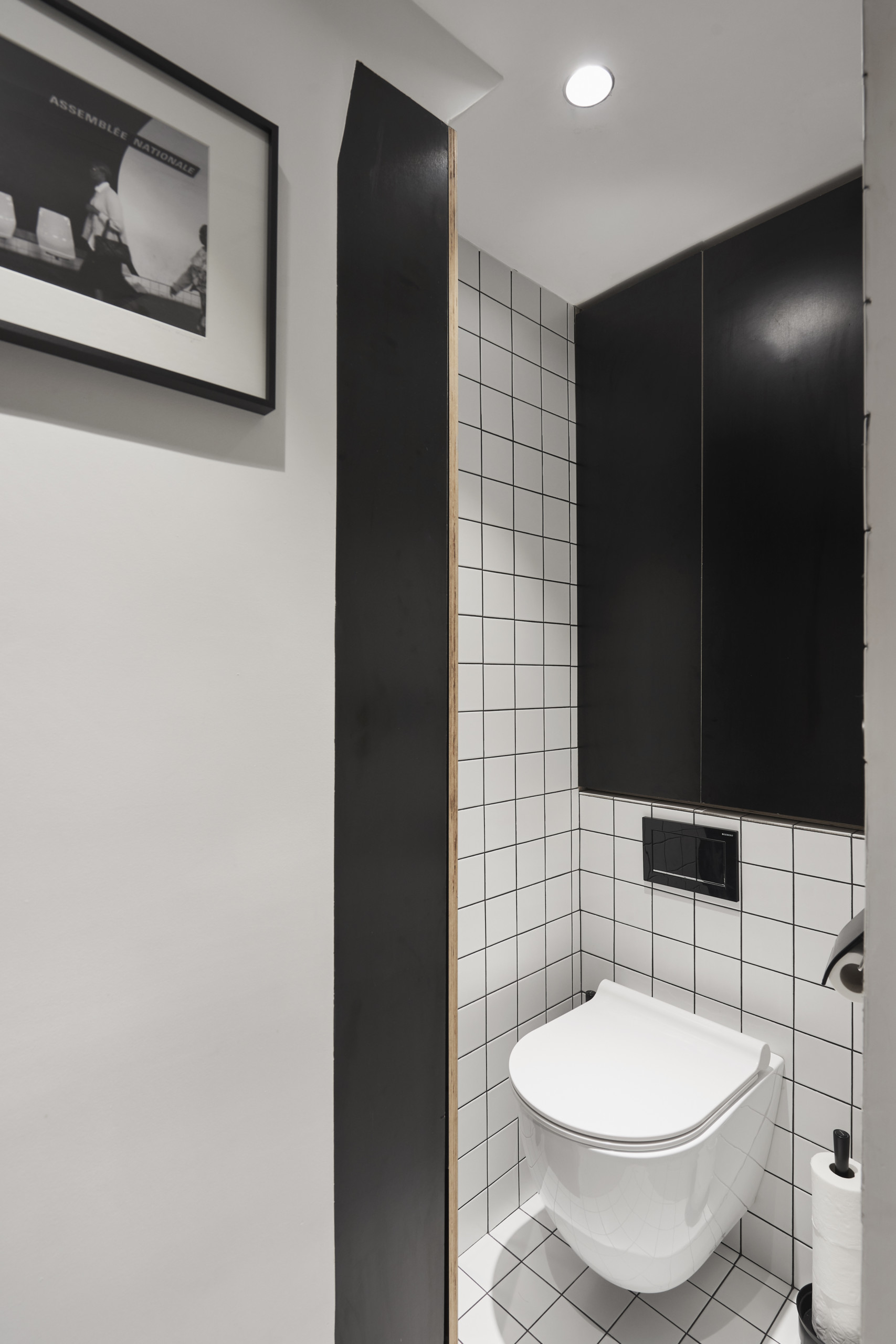 Les toilettes reprennent les codes de la salle d’eau. Ils ont aussi leur couleur : ce sera le noir !