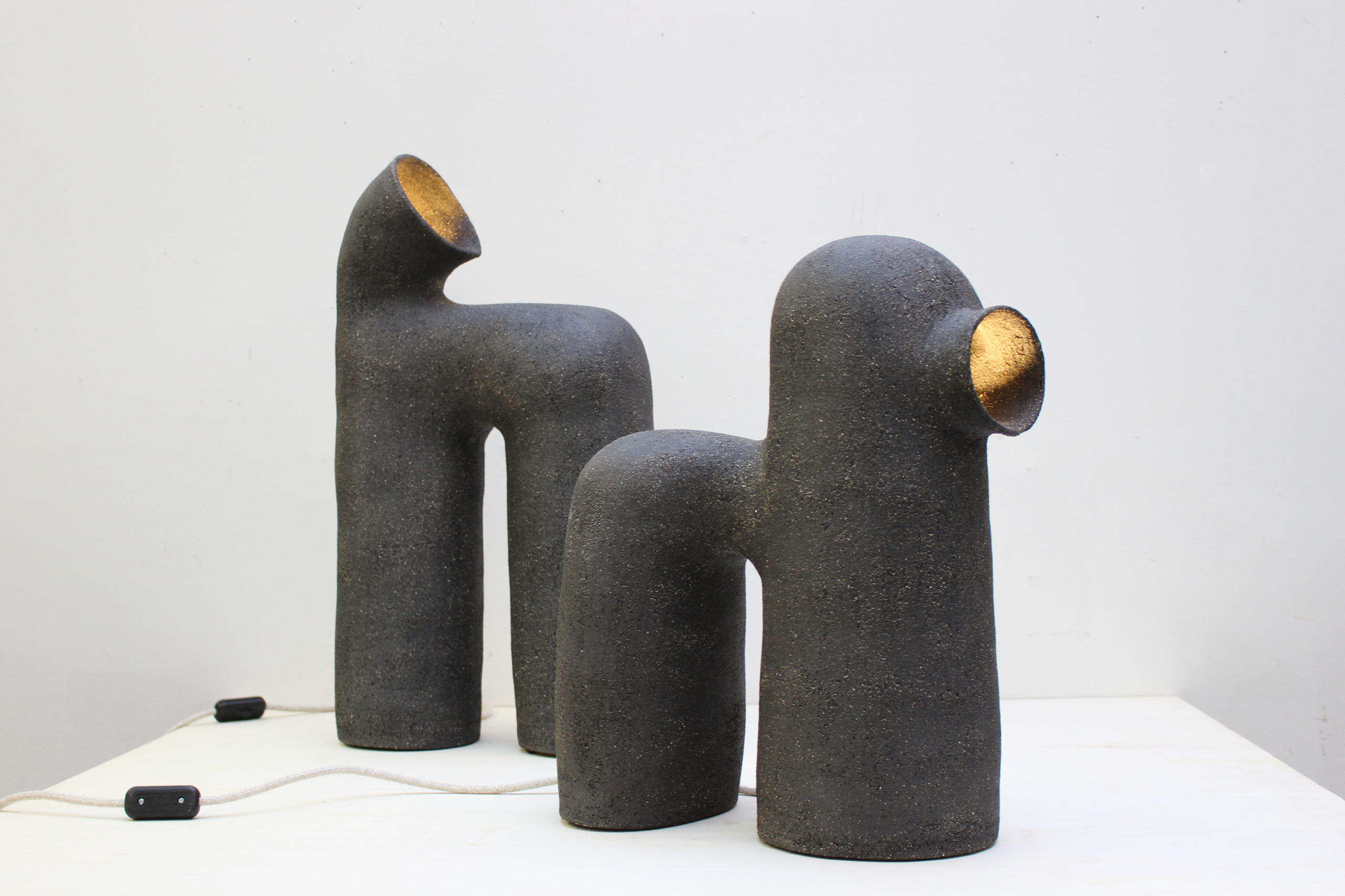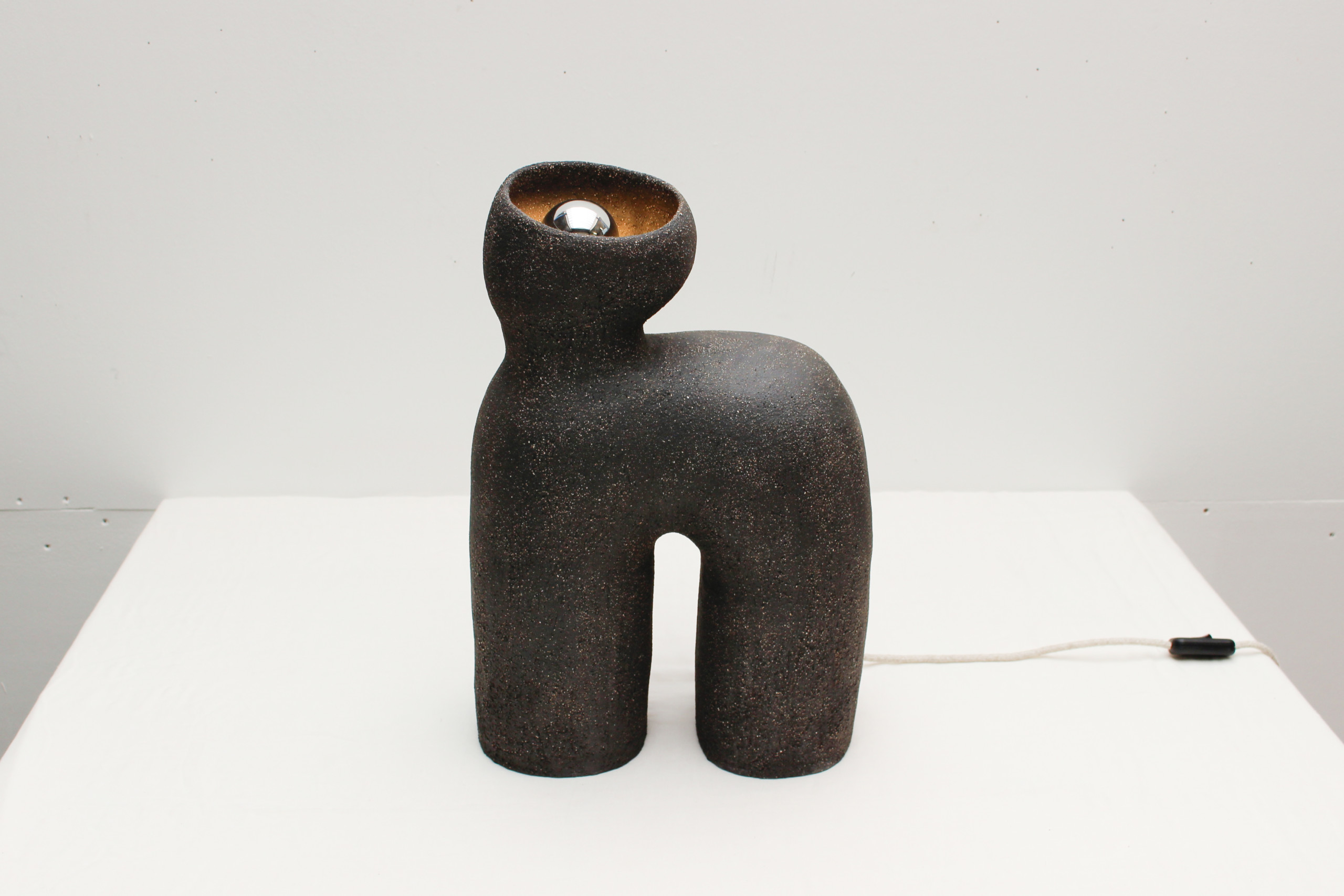 Dans son atelier Roubaisien, Elisa Uberti travaille principalement le grès, sa matière de prédilection, qu’elle modèle à la main pour créer des sculptures, lampes ou vases aux formes courbes et réconfortantes témoignants d’un geste manuel ancestral. Ses oeuvres forment un microcosme particulier, loin de l’uniformisation, et témoignent de sa sensibilité artistique. Un univers épuré aux inspirations multiples telles que la nature minérale et organique, le nomadisme, l’architecture et la poésie de l’espace reliés par un même fil conducteur, le respect du temps qui passe et un besoin d’intemporalité.