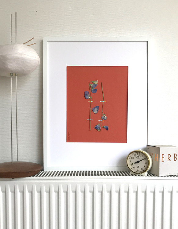 Pois de senteurs et Myosotis, des planches d’herbier en séries limitées qui varient au fil des saisons.