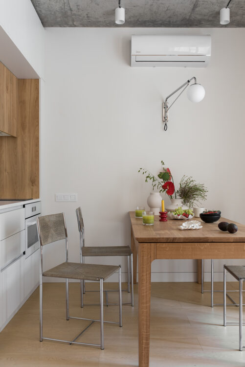 Les fondateurs du studio Between The Walls, Andrii Anisimov et Victoria Karieva, signent un appartement de 37 mètres carrés niché dans le quartier de Podil, à Kiev. Marqué par son passé industriel, le projet conserve une mémoire brutaliste que le duo réinterprète dans un esprit contemporain.