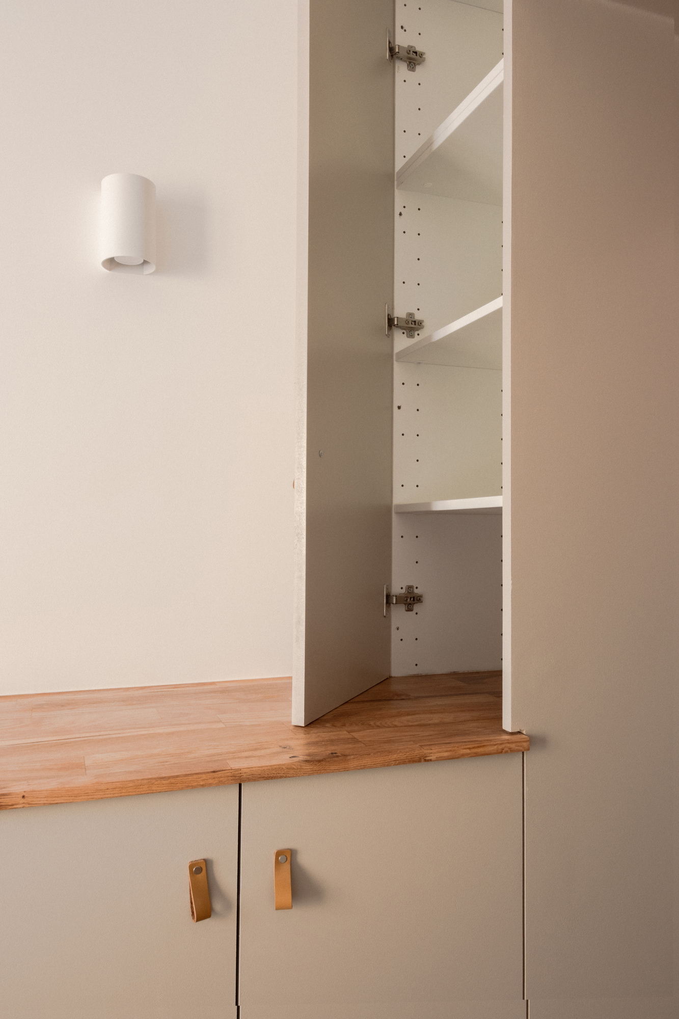 … à l’image du meuble séparant la cuisine du séjour, ces menuiseries sur mesure permettent d’optimiser chaque recoin de la pièce.