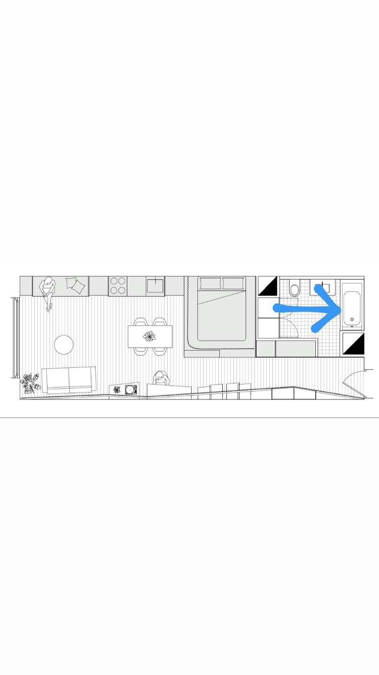 Pour préserver l’intimité, la salle de bain a été placée dans la seule partie close du module. La décoration y est sobre, urbaine et monochrome !