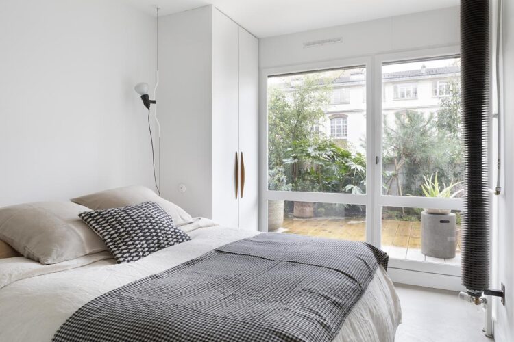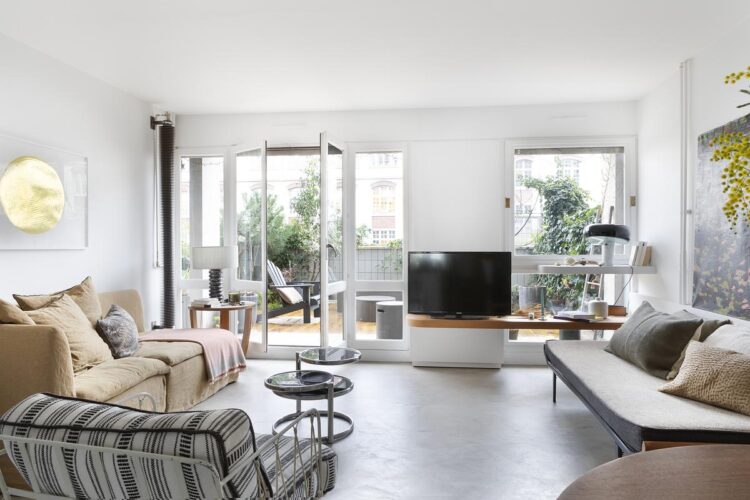 Le projet met en valeur la terrasse, pensée comme le prolongement naturel de l’intérieur, idéal pour profiter d’un espace extérieur en plein Paris.