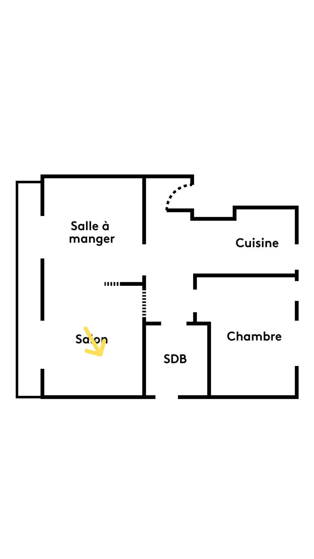 Dans le séjour, la cloison médiane a en partie été démontée pour créer une séparation subtile entre le salon et la salle à manger.