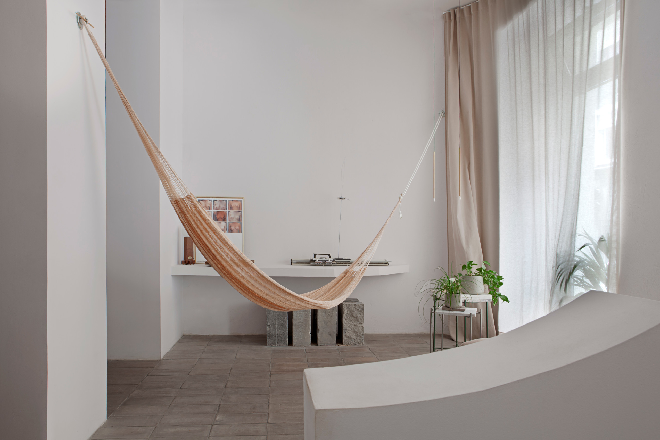 Les tissus sont de véritables protagonistes de l’espace avec leurs nuances et transparences. Ce hamac colombien a été tissé en respectant les techniques traditionnelles.