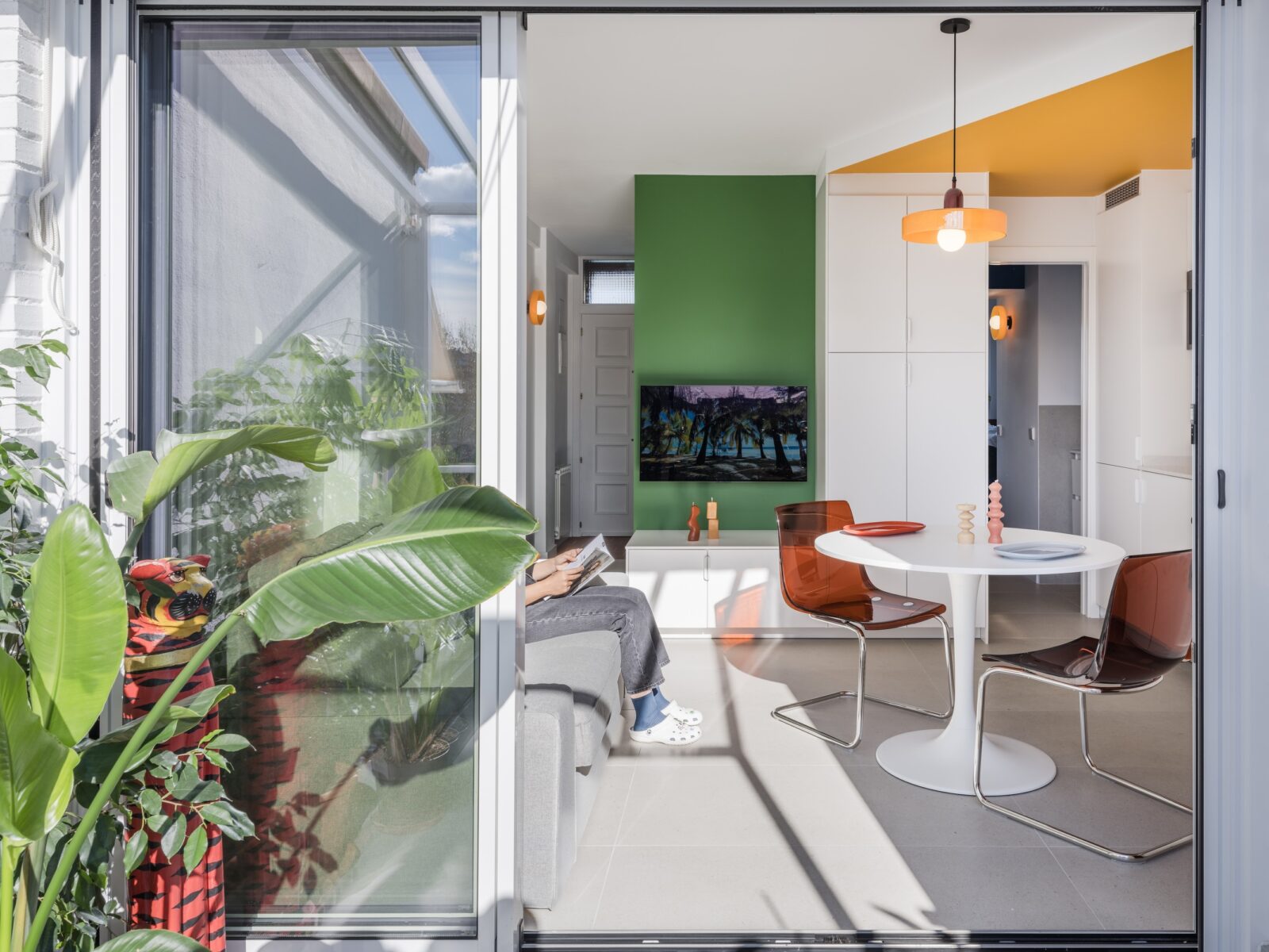 Au nord de Madrid, dans une construction des années 1980, l’agence gon-architects transforme un 40 mètres carrés cloisonné en un espace coloré et traversant.