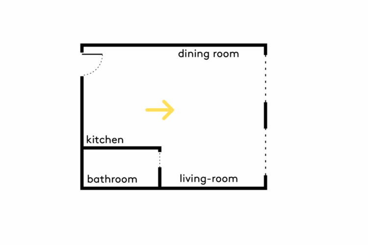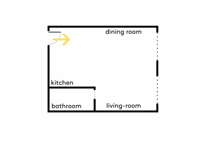 Depuis l’entrée, la lumière guide le regard vers la pièce principale.