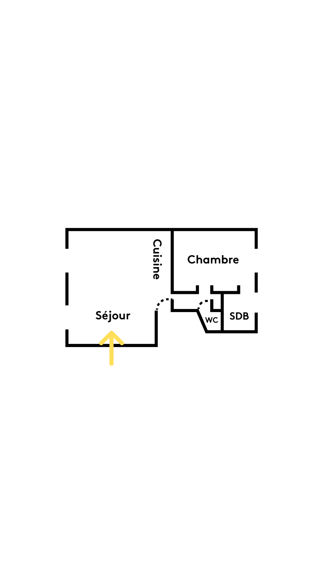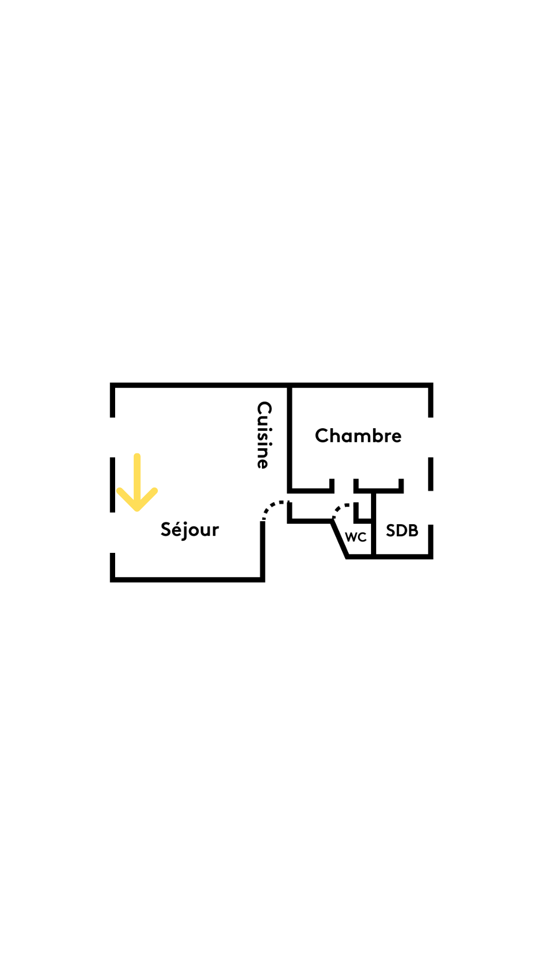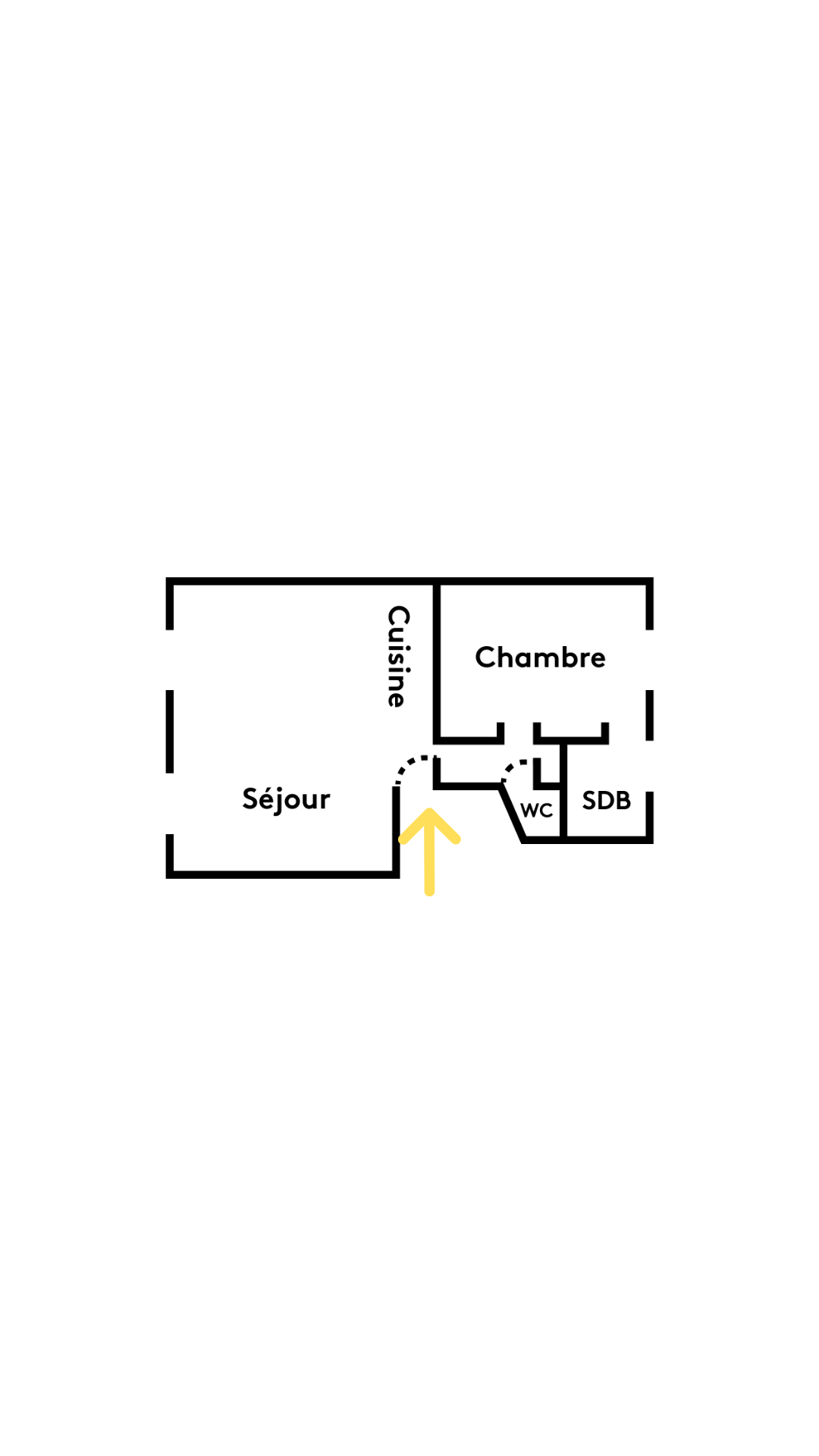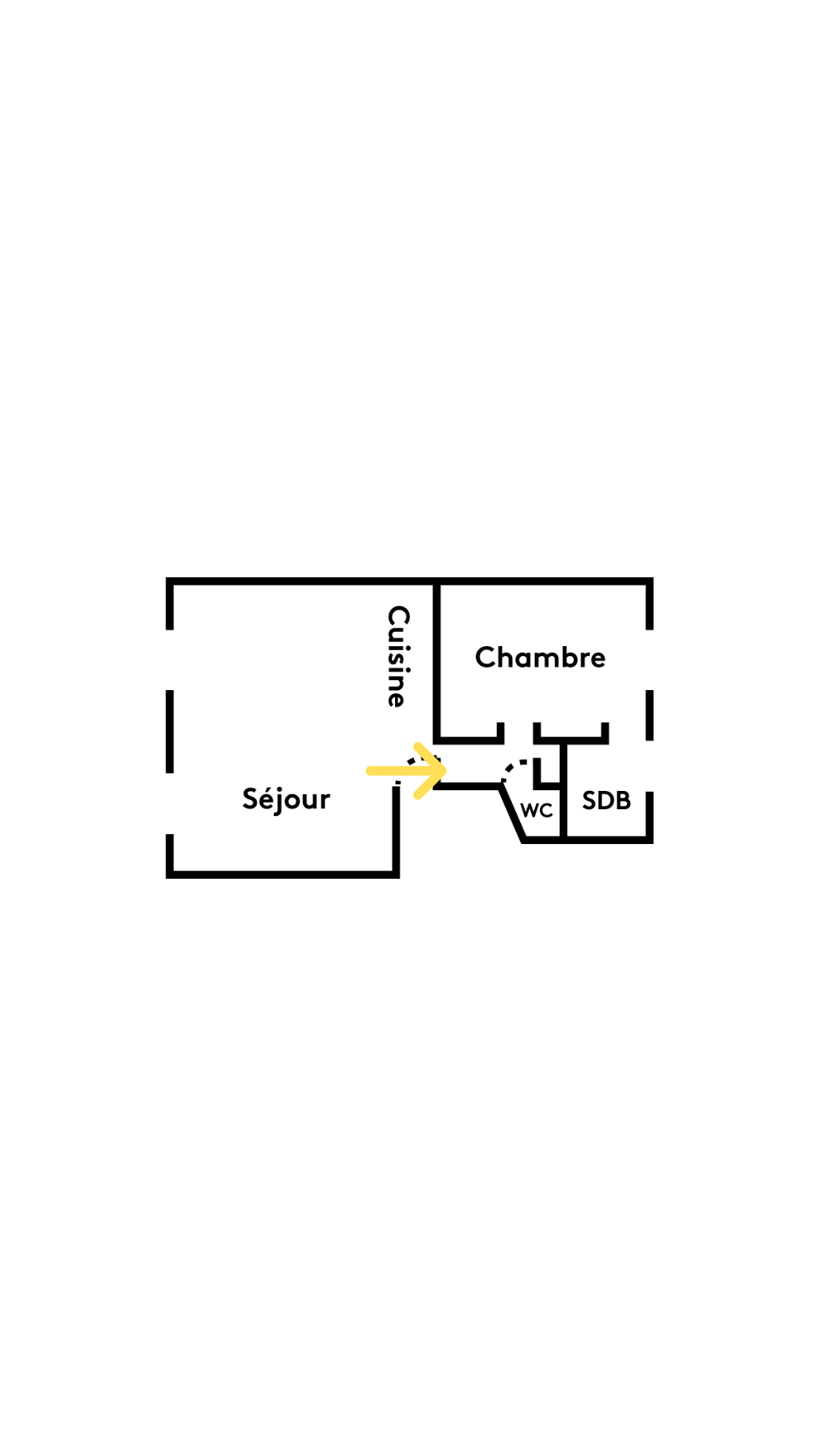 L’entrée débouche sur la cuisine, intervertie avec l’ancienne salle d’eau pour s’ouvrir sur le séjour.