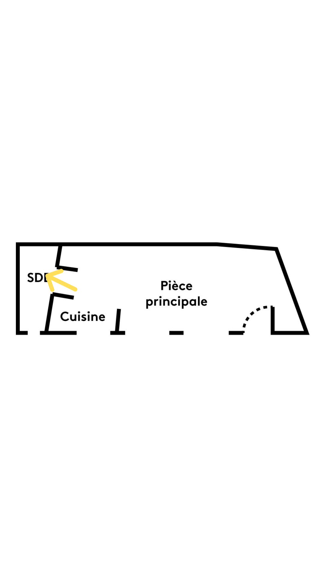 Et voici la vue depuis la salle d’eau, en direction de l’entrée.