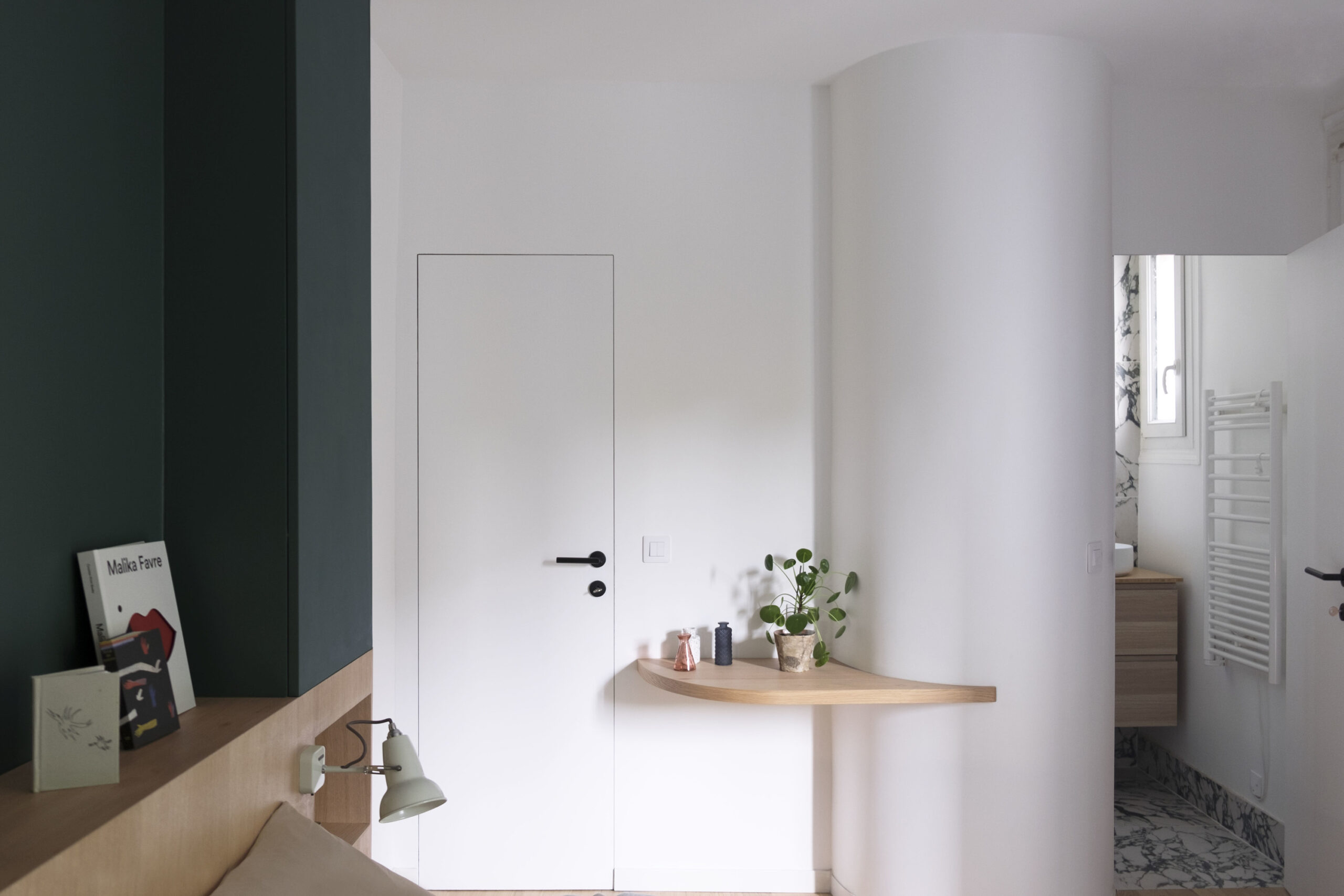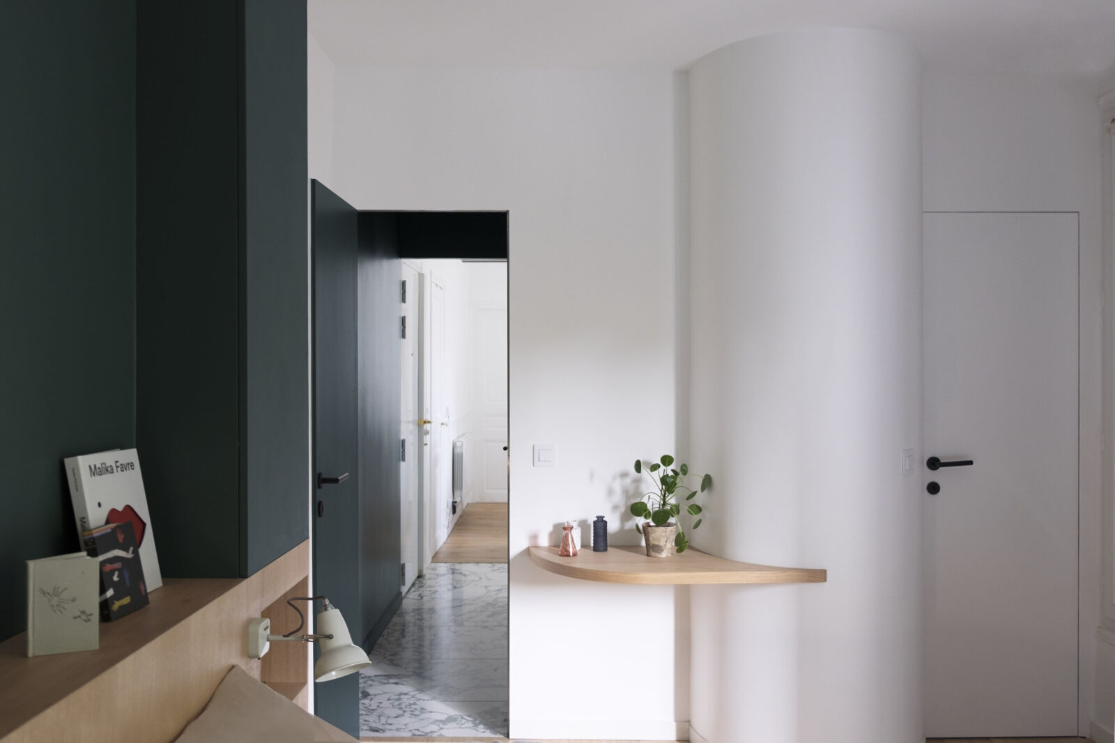 De jour à nuit, en vert kaki : rénovation d’un 40 m² à Paris