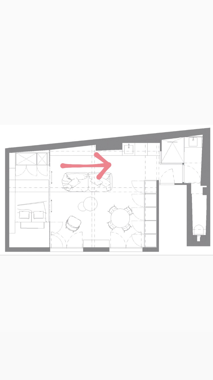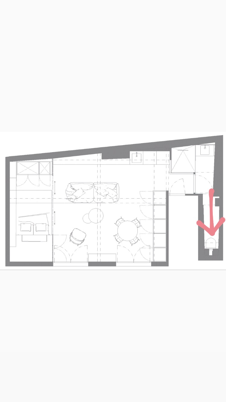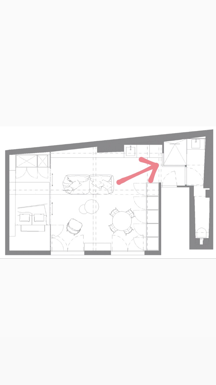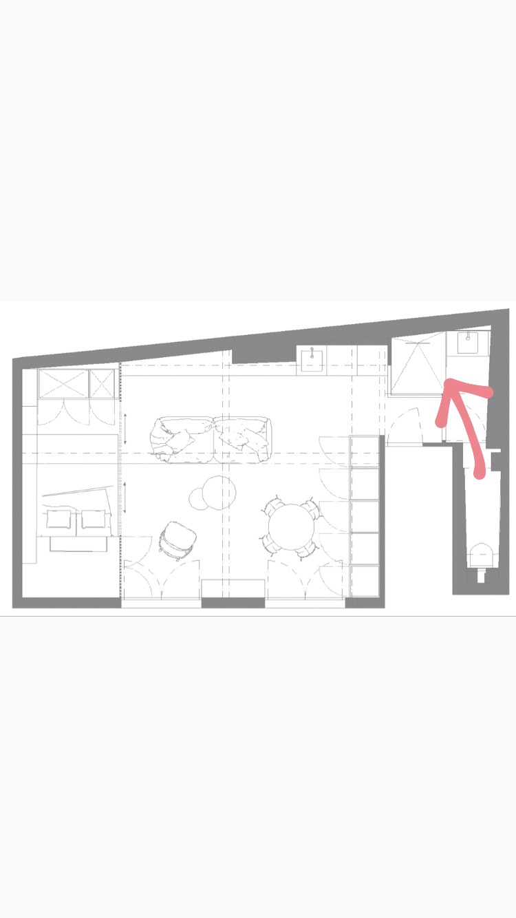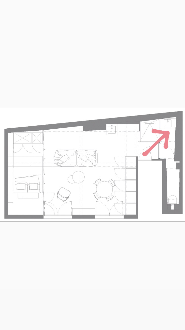 À l’intérieur, les couleurs suivent les codes de l’appartement : ce sera du rose ! Les détails sont choisis noirs pour dynamiser la douce couleur…