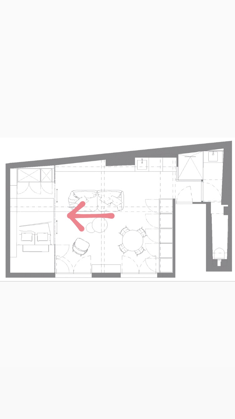 Après la poutre, une seconde pièce maîtresse habille avec originalité et élégance l’appartement. Il s’agit d’un claustra à l’esprit années 60 et réalisé sur-mesure pour séparer la chambre tout en conservant la lumière du séjour.