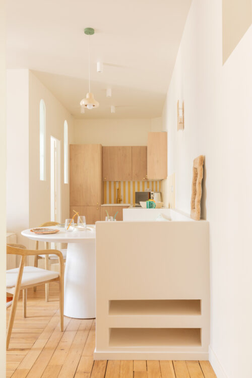 Dans le 17e arrondissement de Paris, un appartement de 45 mètres carrés reprend vie après plus de trente ans sans rénovation. Repensé dans sa globalité par l’agence Maison Gabinel, il devient un pied-à-terre fonctionnel mais surtout joyeux, à l’image d’un refuge familial lumineux.