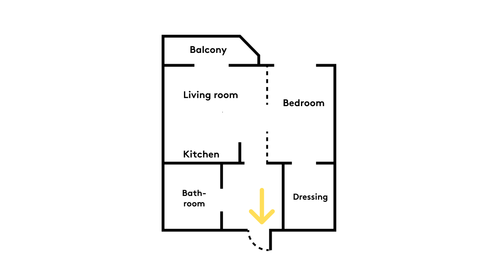 Chaque élément de mobilier est habilement mis en scène : un miroir reflète ainsi la luminosité émanant du séjour et souligne un dressing et une jolie porte ouvragée.