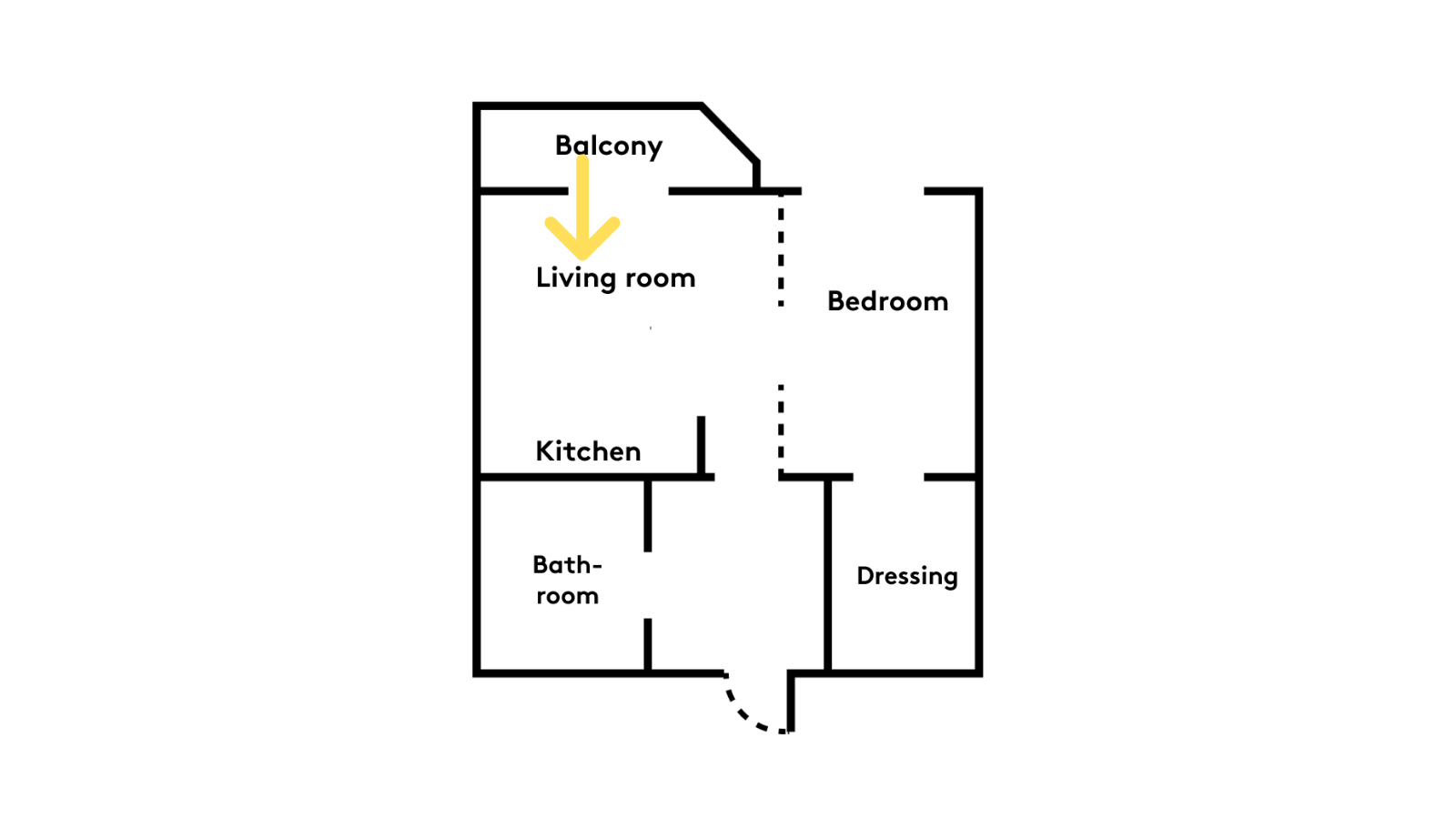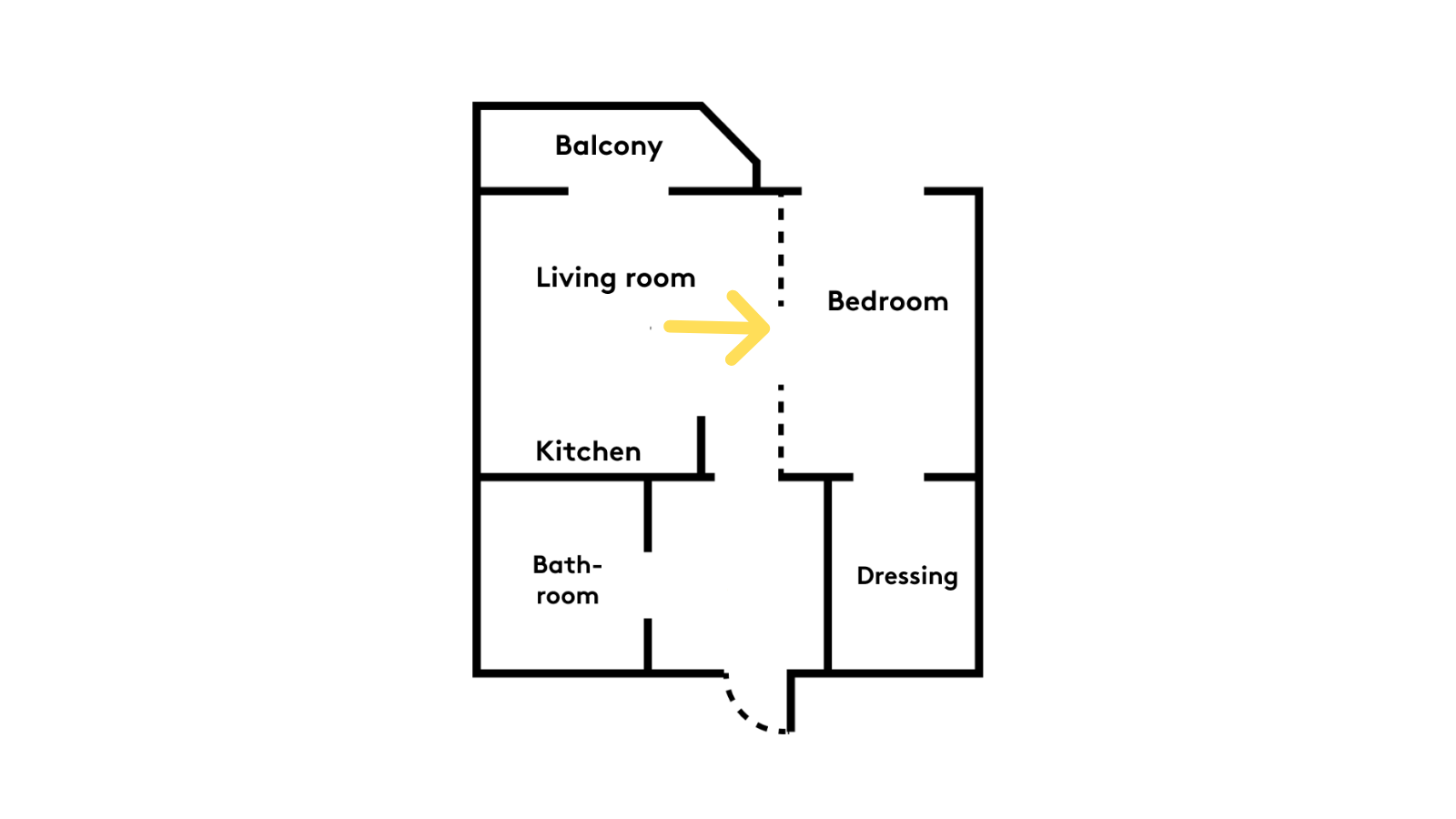 Le séjour rassemble la cuisine, l’espace repas et le salon afin de libérer de la place pour créer une chambre à part entière.