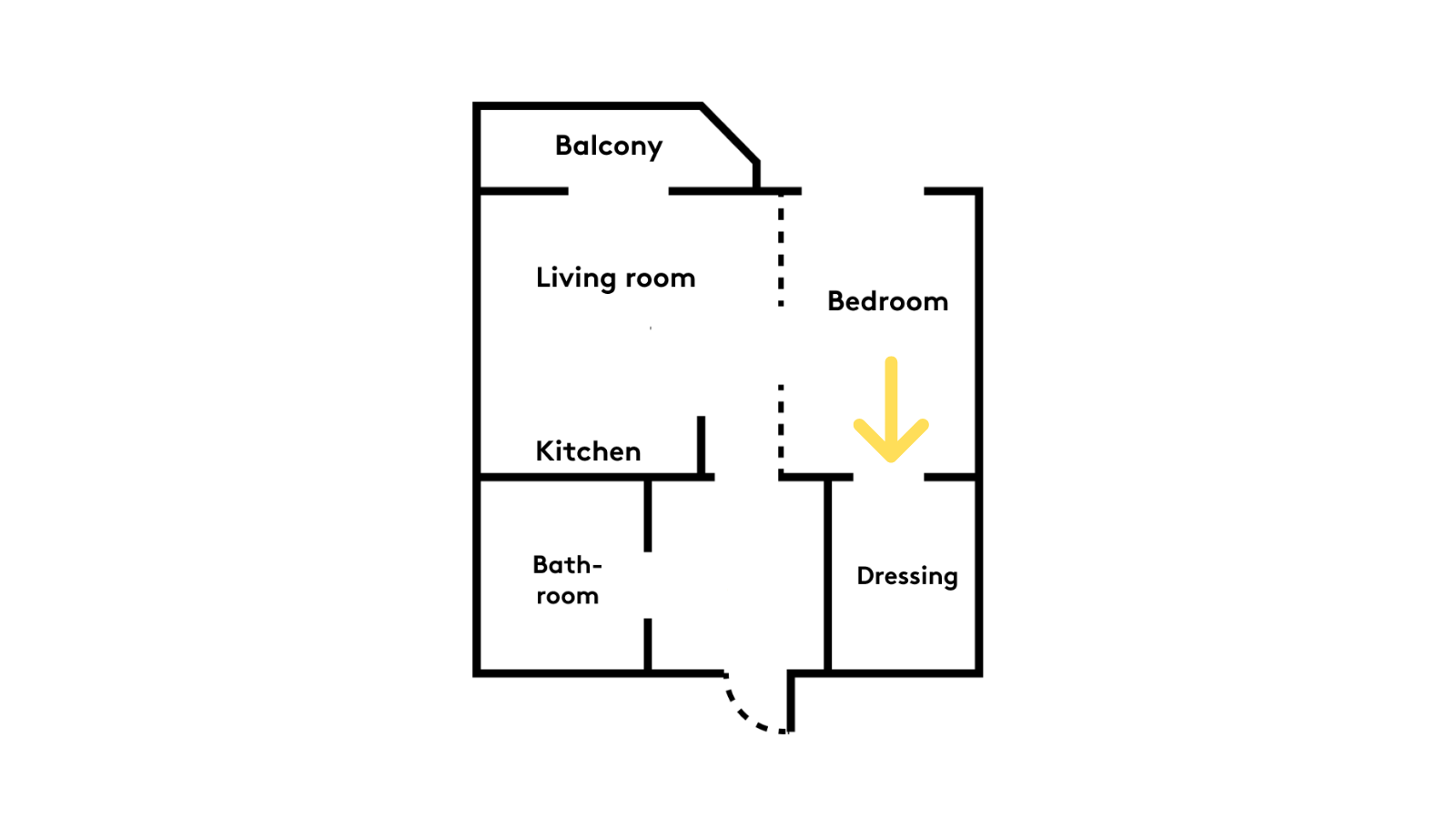 Un rideau positionné derrière une arche révèle l’accès à un spacieux dressing : on est décidément loin du studio avec lit dépliant !