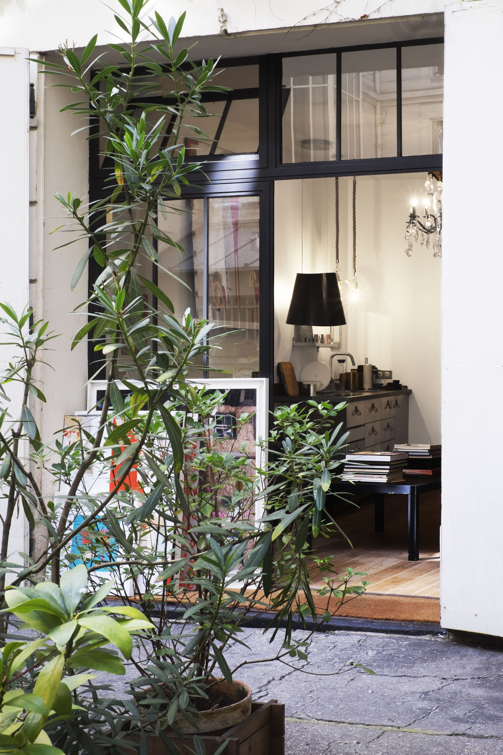 L’entrée se fait par une belle verrière d’atelier en fer forgé, donnant sur une charmante cour végétalisée !