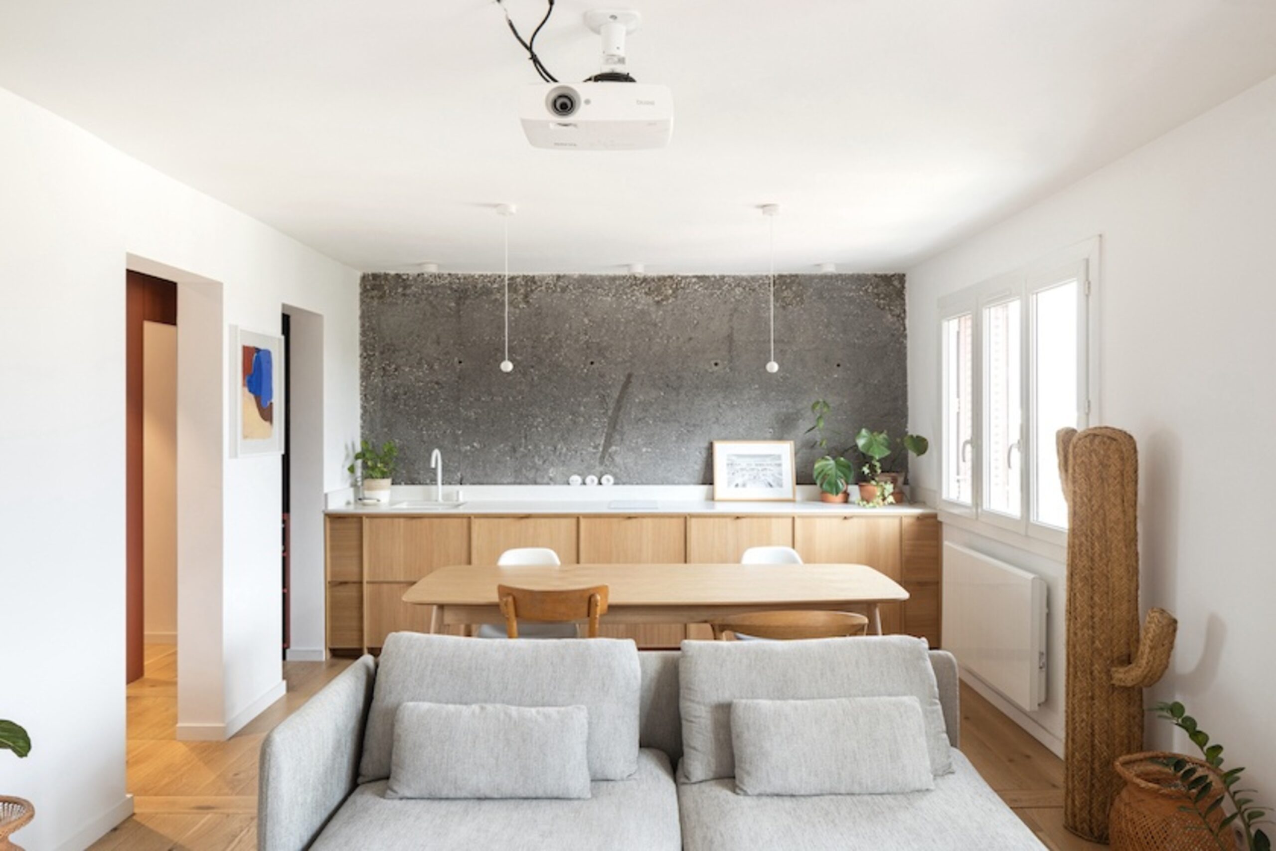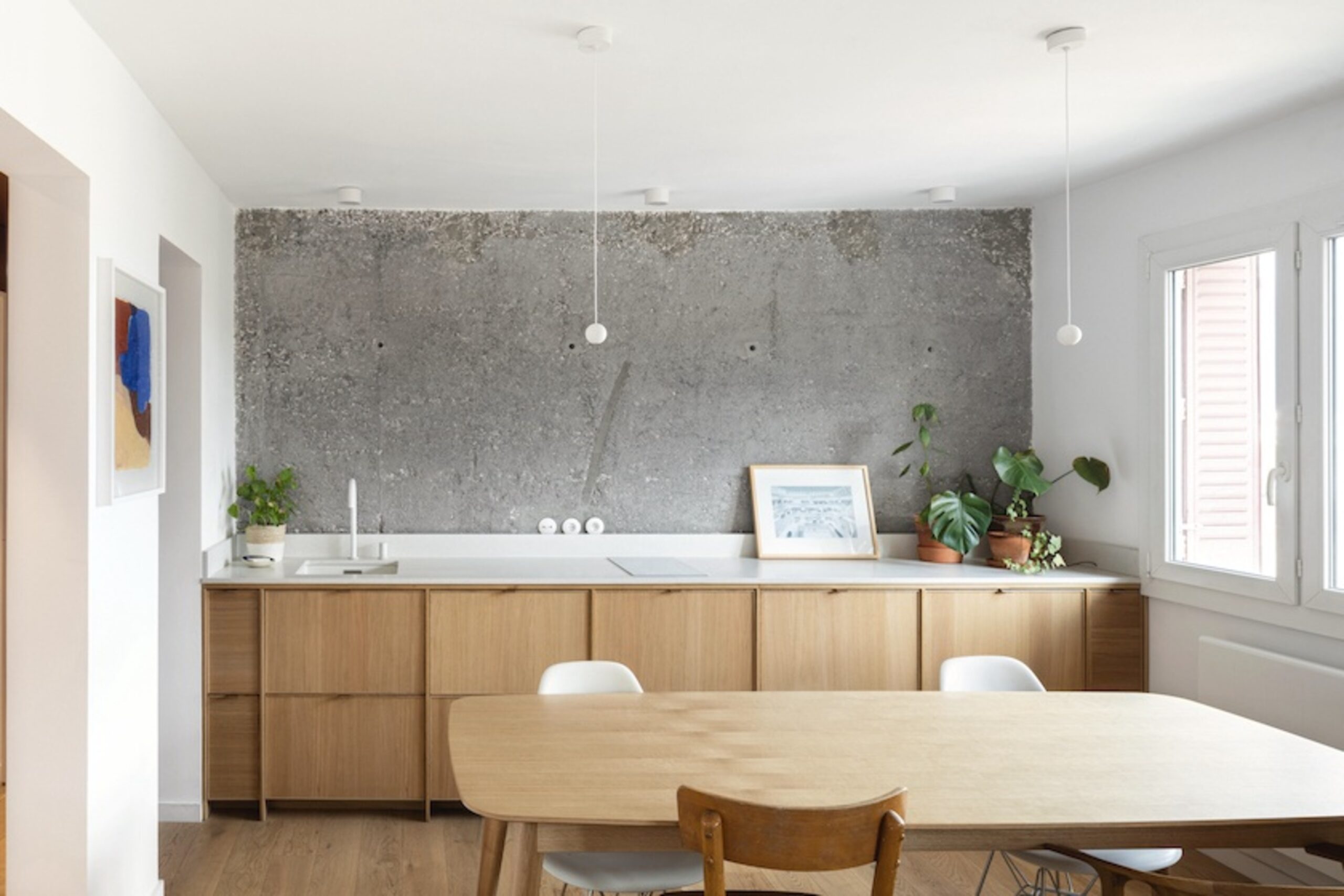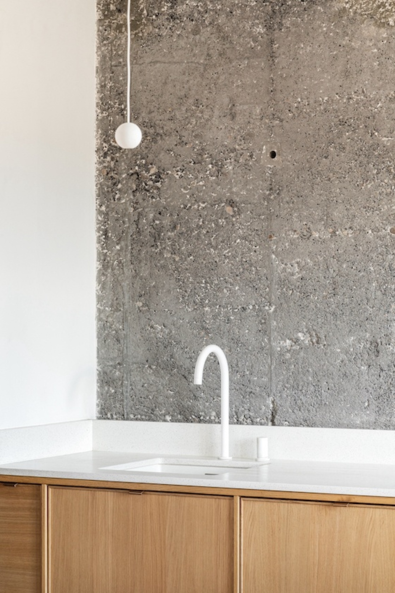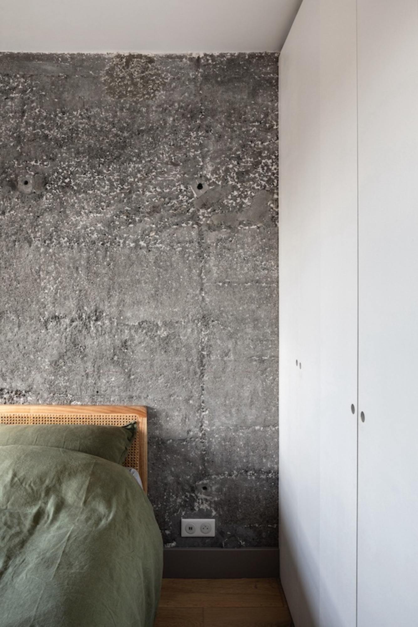 Un moyen d’alléger l’espace et de faire ressortir le mur d’origine en béton.