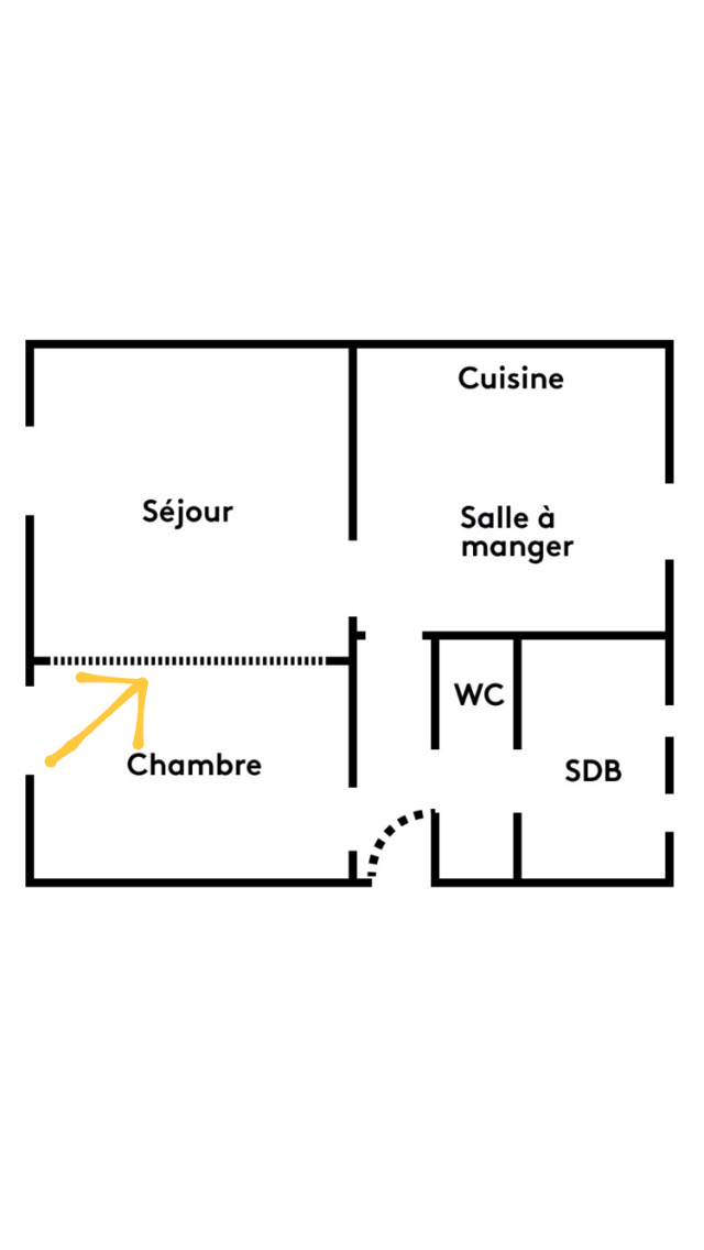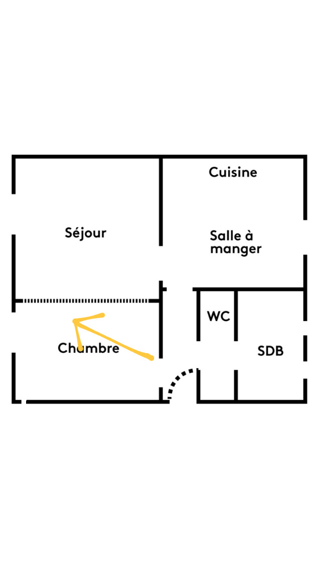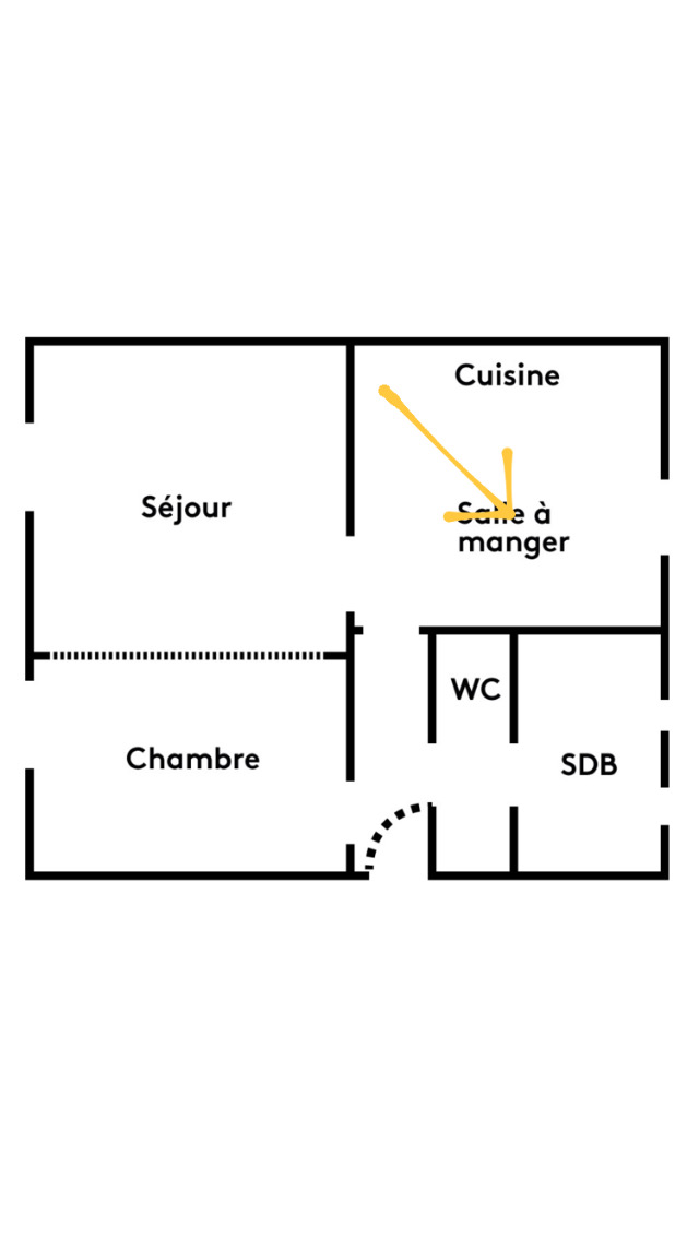 Aviez vous noté les traces de la cheminée d’origine au sol ? Celle-ci a été retirée, pour pouvoir créer l’espace travail.