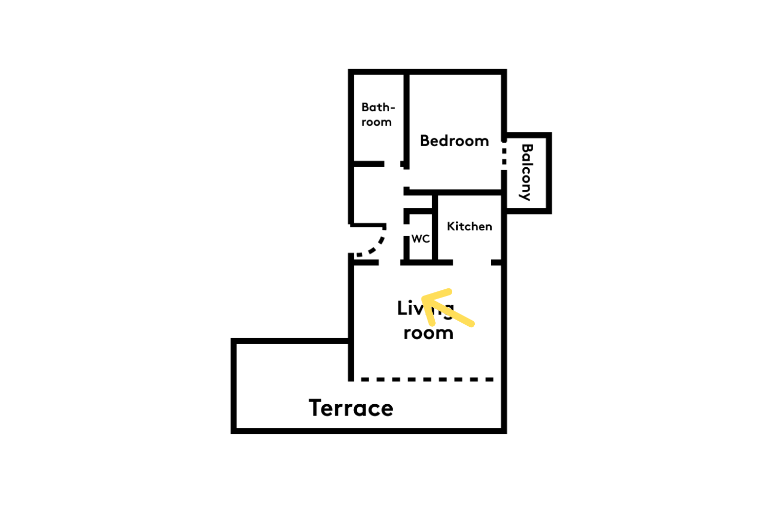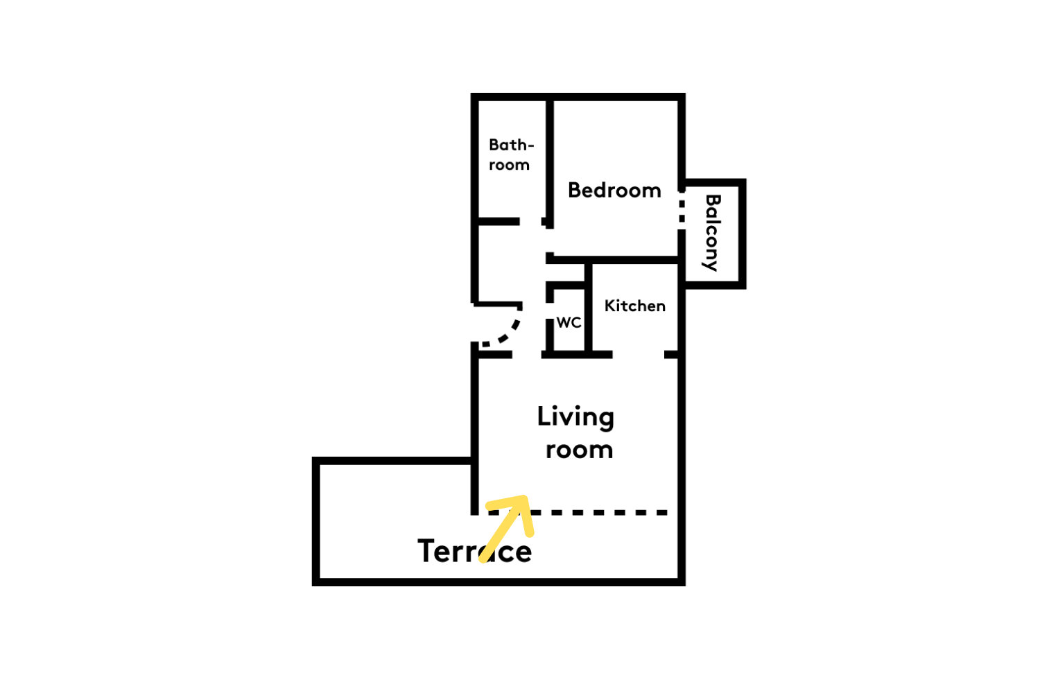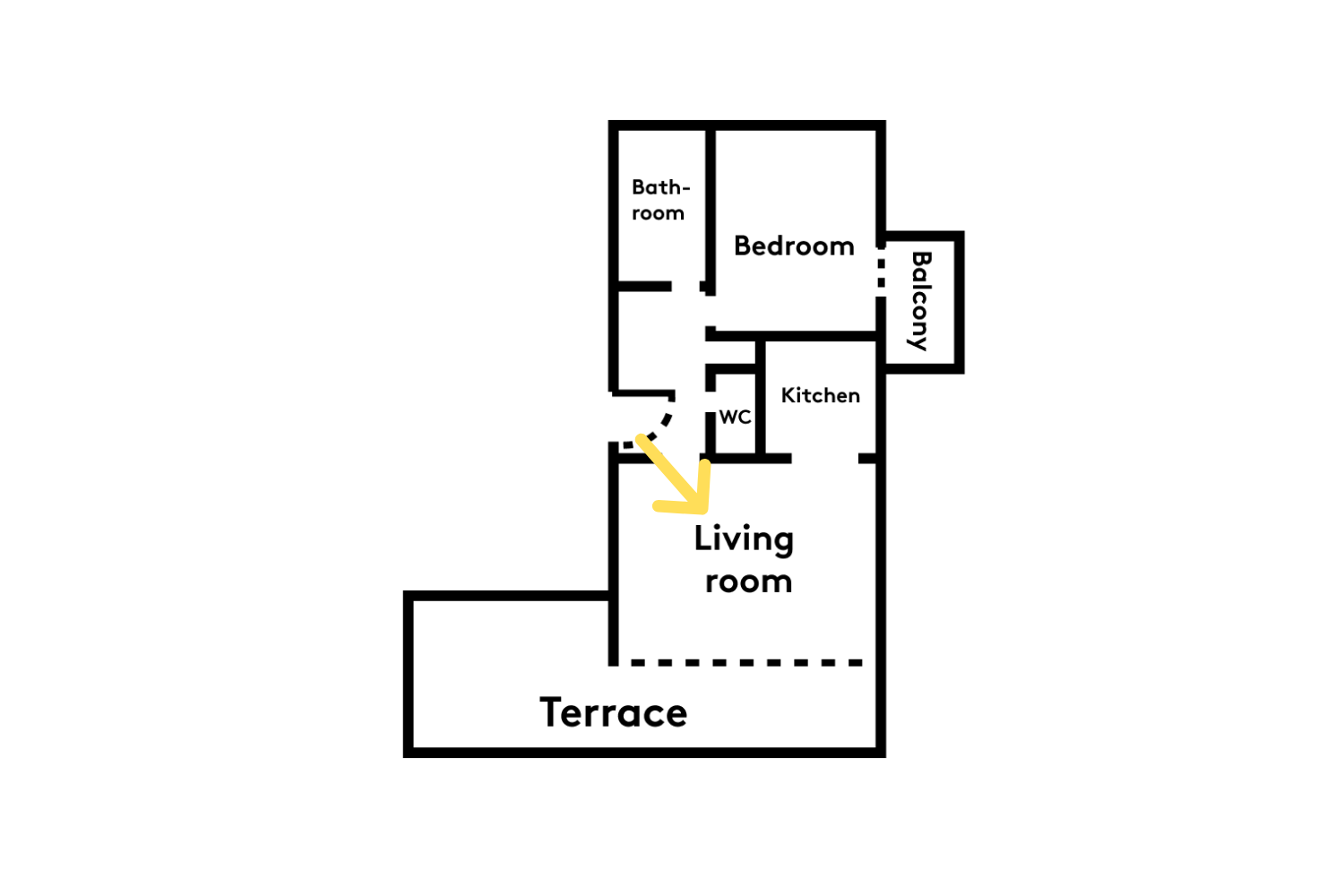 Le séjour est baigné de lumière gràce à la belle surface vitrée de la façade. Cerise sur le gâteau, une généreuse terrasse se dévoile.
