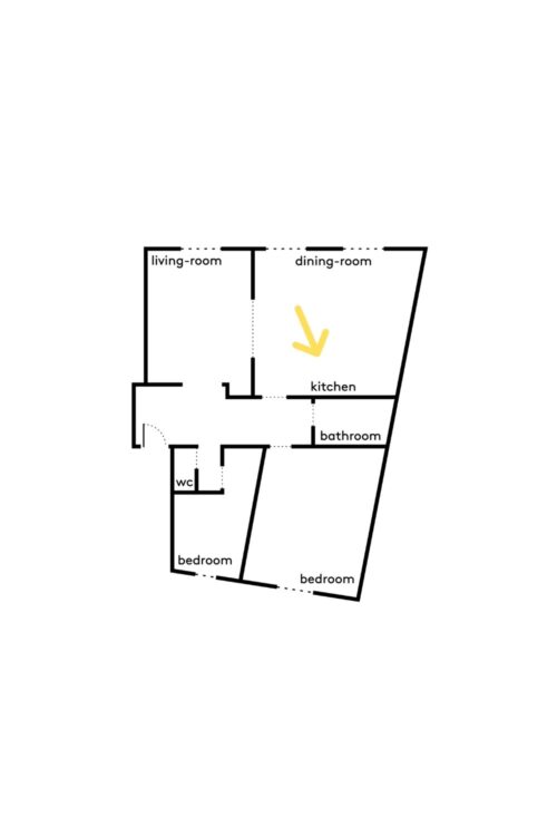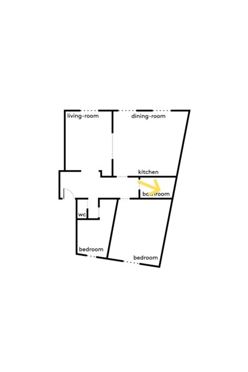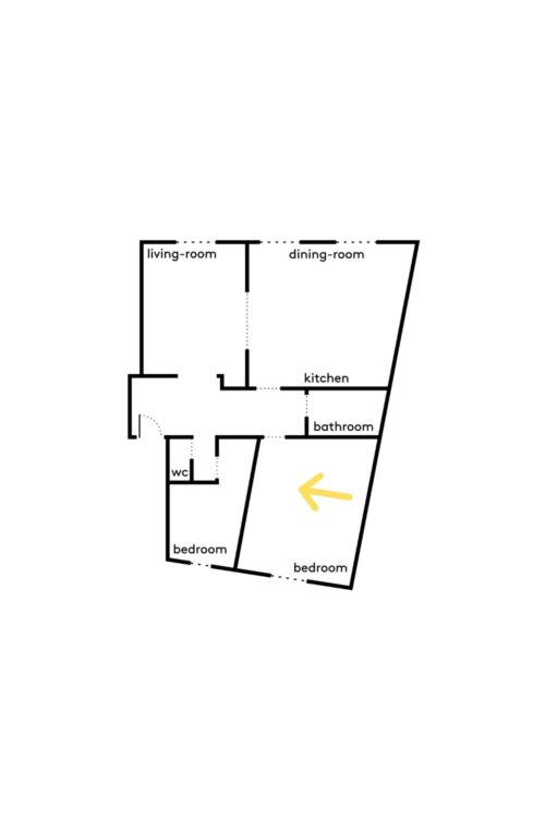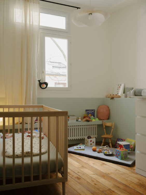 Enfin, place à la chambre d’enfant, installée dans l’ancienne cuisine : un parquet réemployé et un soubassement bleu clair de