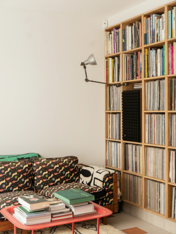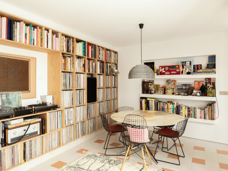 Côté déco, la collection de vinyles du propriétaire occupe une place centrale.