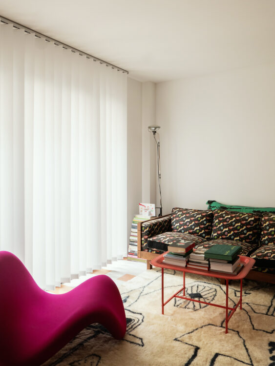Le sol en carreaux de ciment MIPA, fabriqués en Italie, se prolonge jusque dans la pièce de vie.