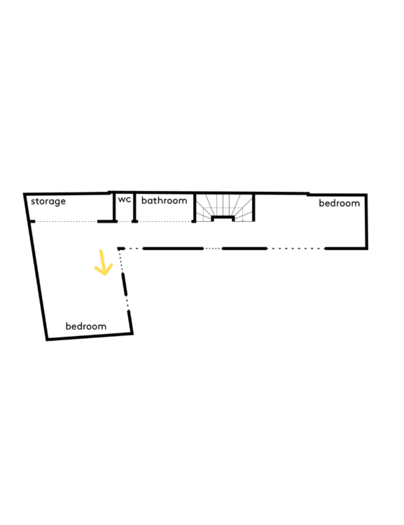 Dans la première chambre, on découvre le bureau sur mesure qui épouse toute la longueur du mur, tandis qu’un dressing vient marquer l’entrée de la pièce.