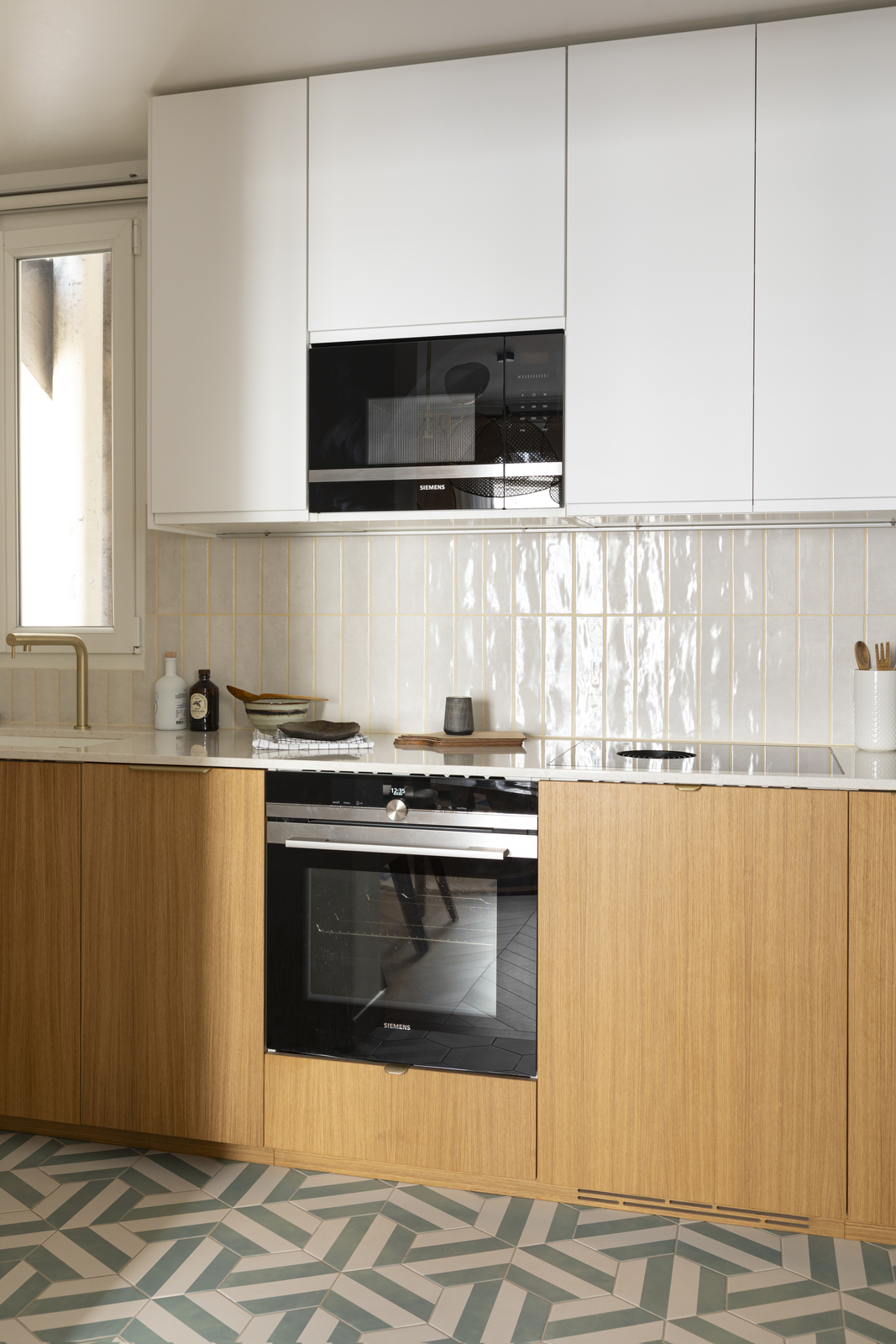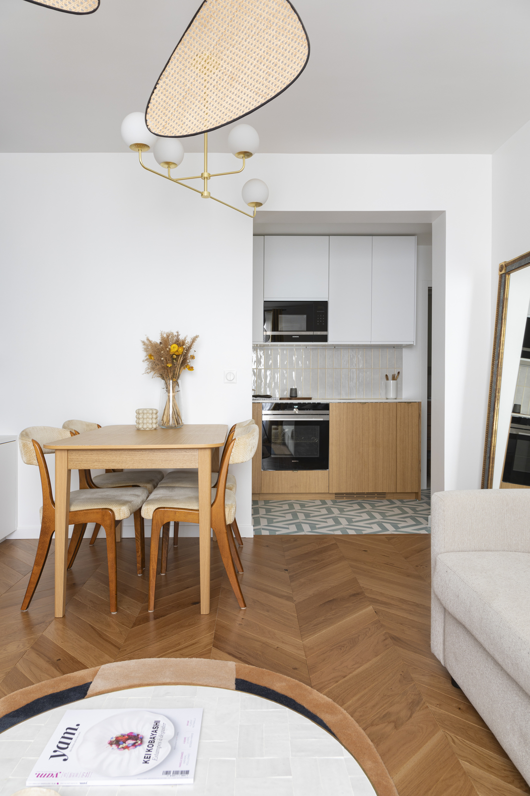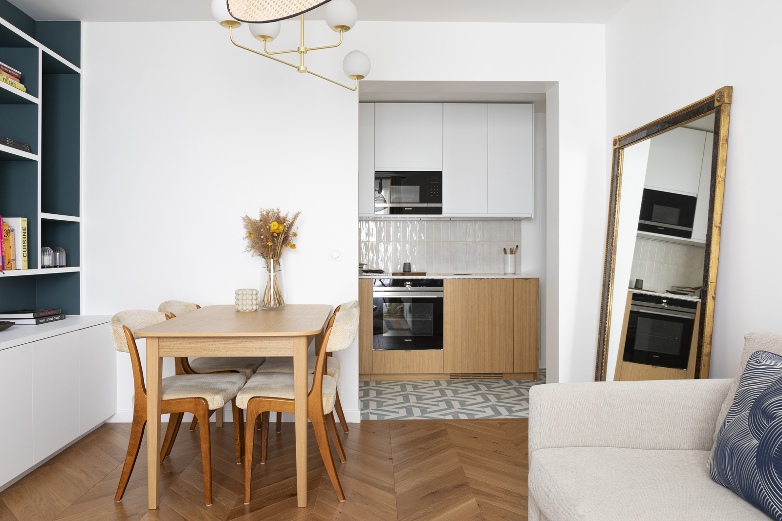 Par sa position centrale dans l’appartement, la cuisine devient un élément décoratif phare.