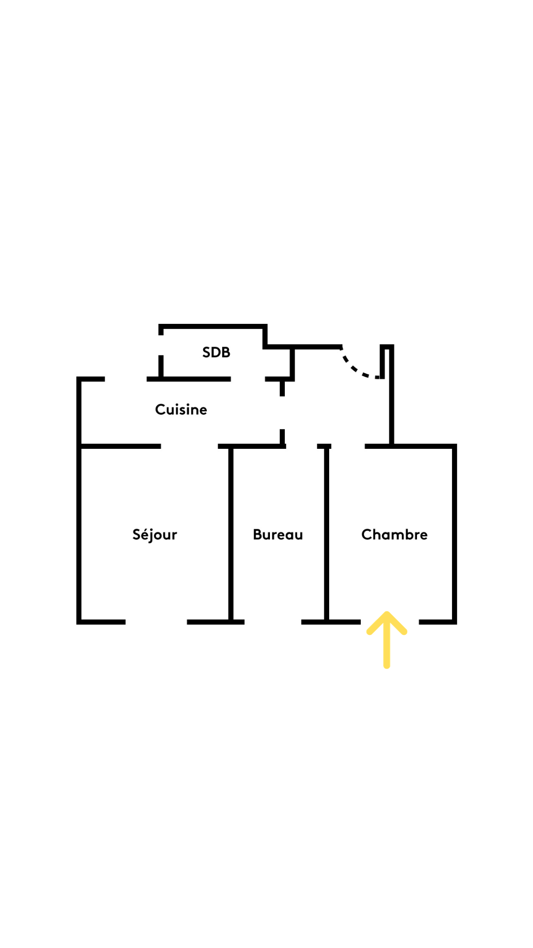 De retour dans l’entrée, on aperçoit les deux chambres qui ont été créées dans l’ancienne pièce de vie.