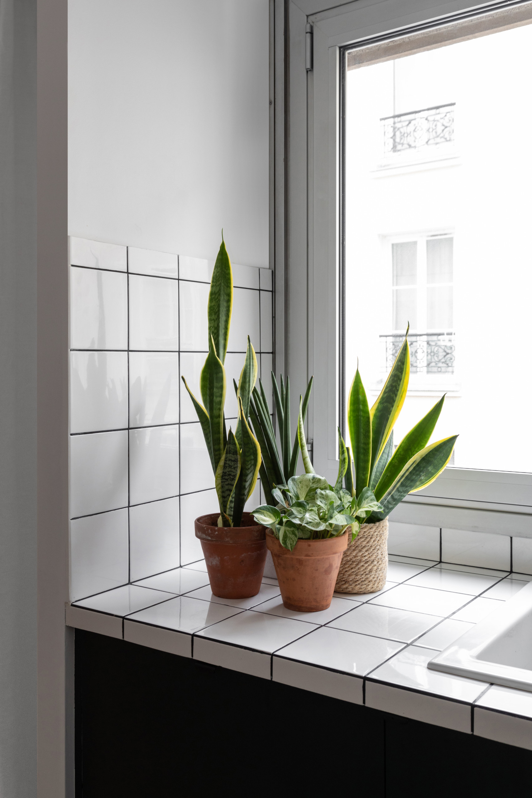 Carrelage Cuisine ouverte Dressing Miroir Mur coloré Plantes