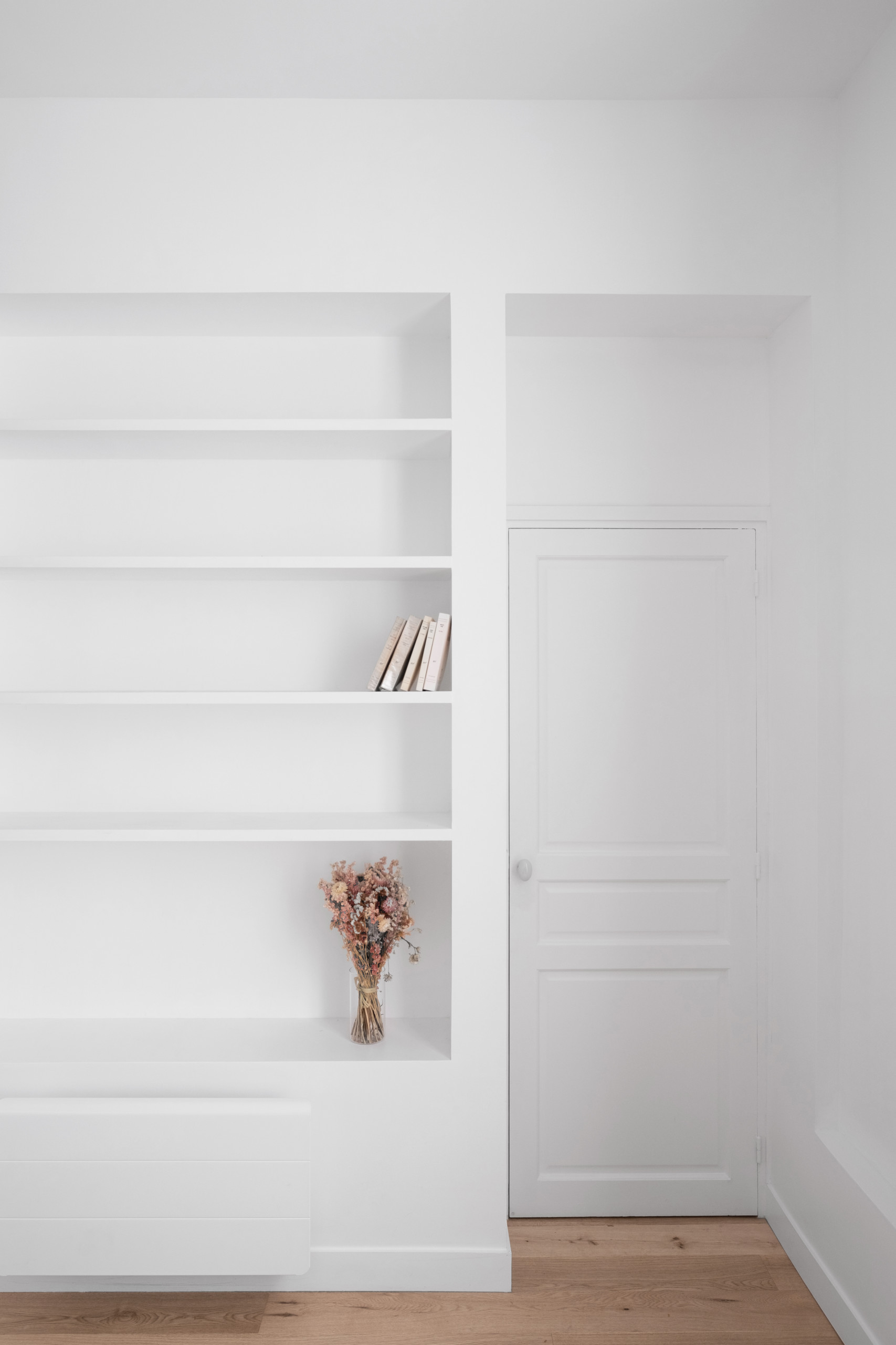 Et une autre niche-bibliothèque pour effectuer la transition dans la pièce qui fait office d’espace lecture !