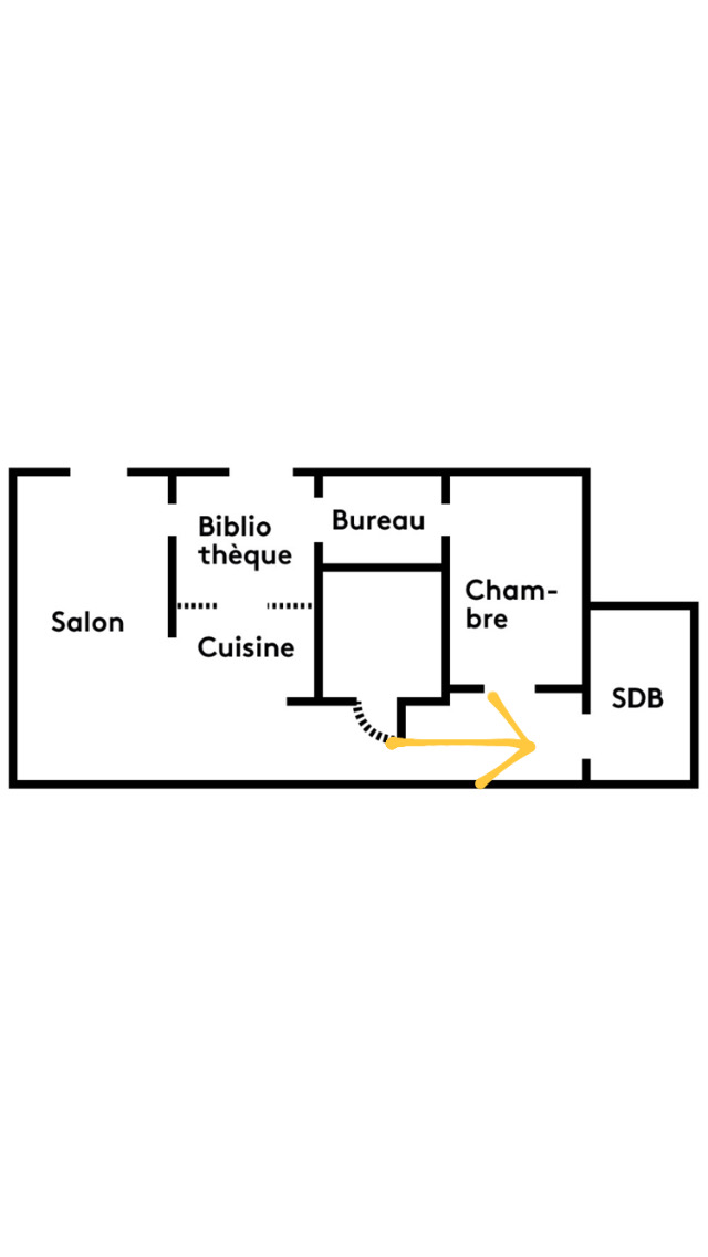 On entre dans l’appartement. Un long couloir dessert les différentes pièces de la maison.
