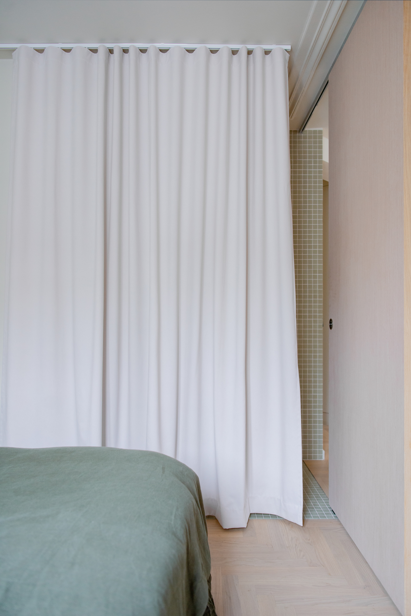 Dans cet esprit de modularité, un rideau permet également de séparer cet espace de la chambre.