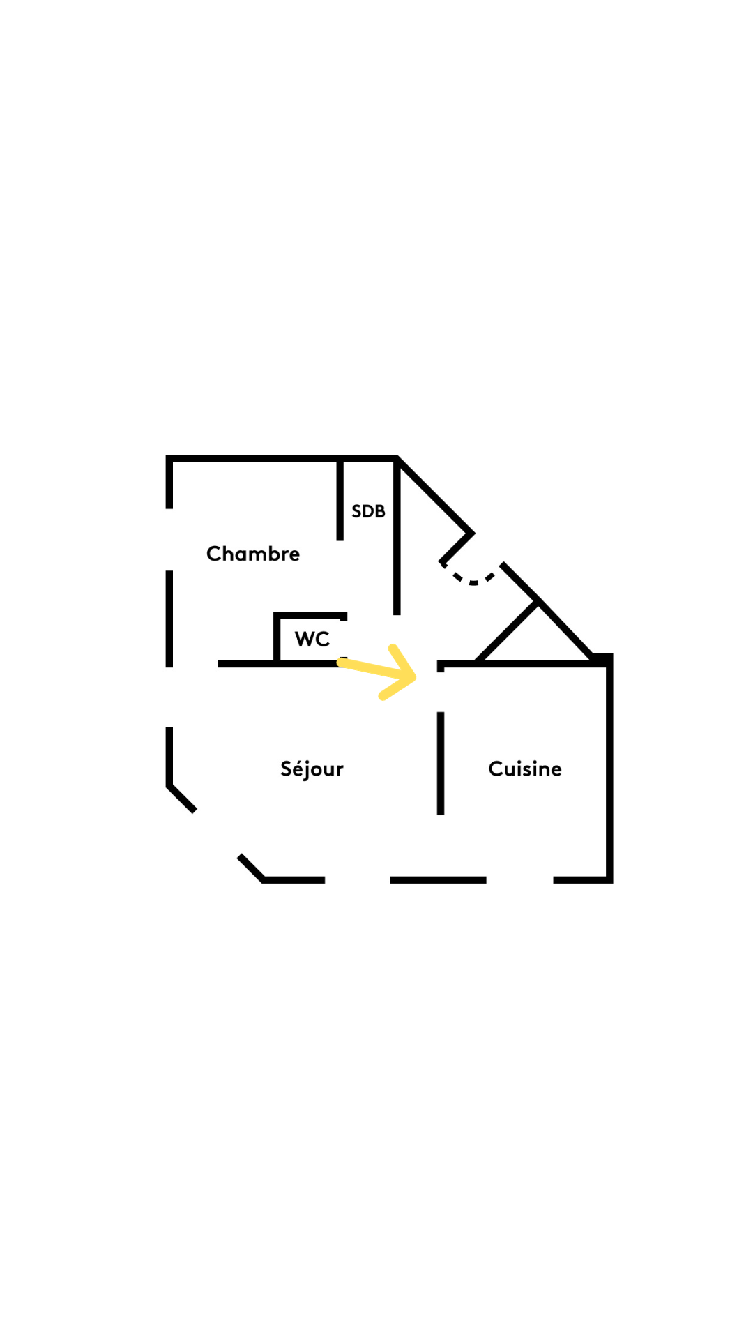Il est lui même suivi d’un accès au séjour habillé d’une nouvelle porte coulissante.