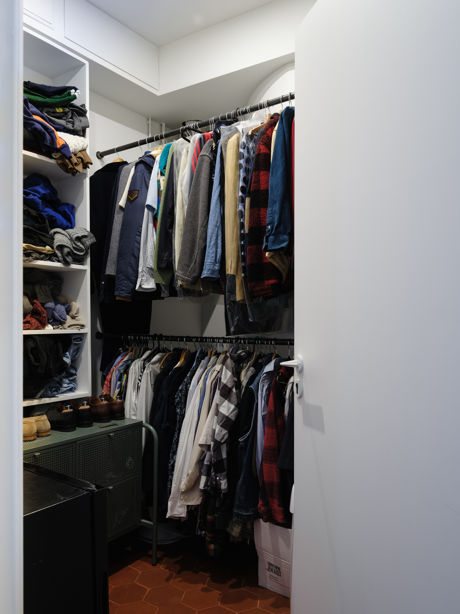 La pièce qui abritait auparavant la cuisine a été convertie en grand dressing.
