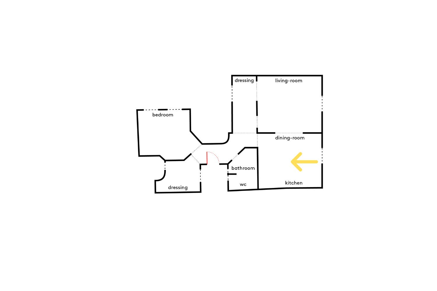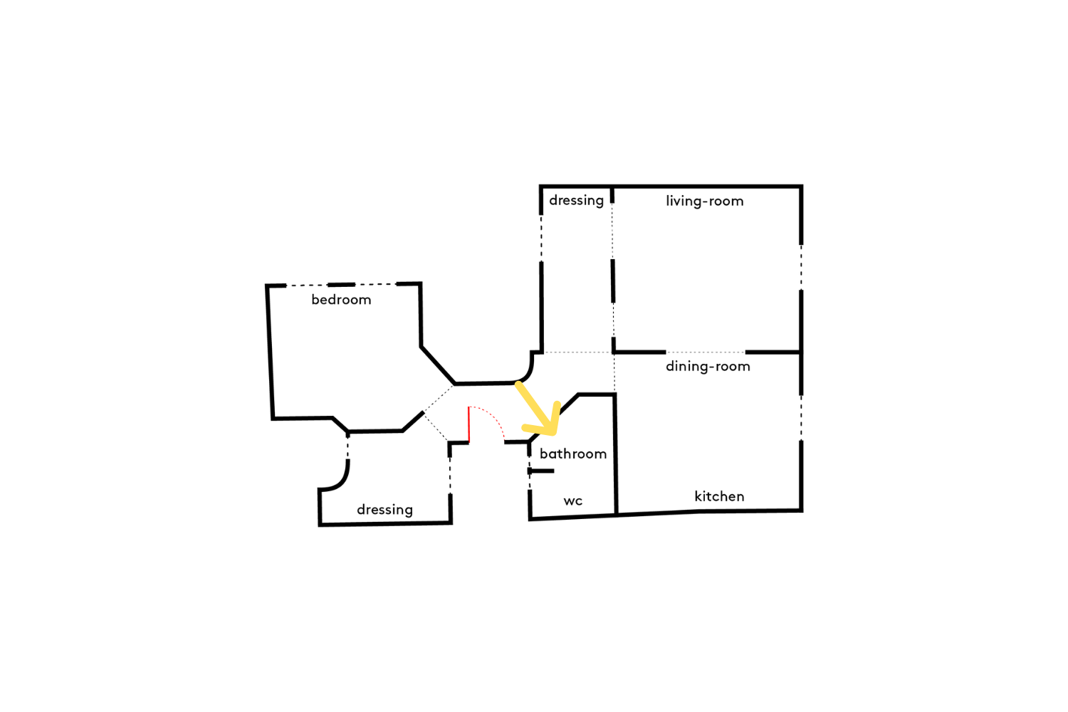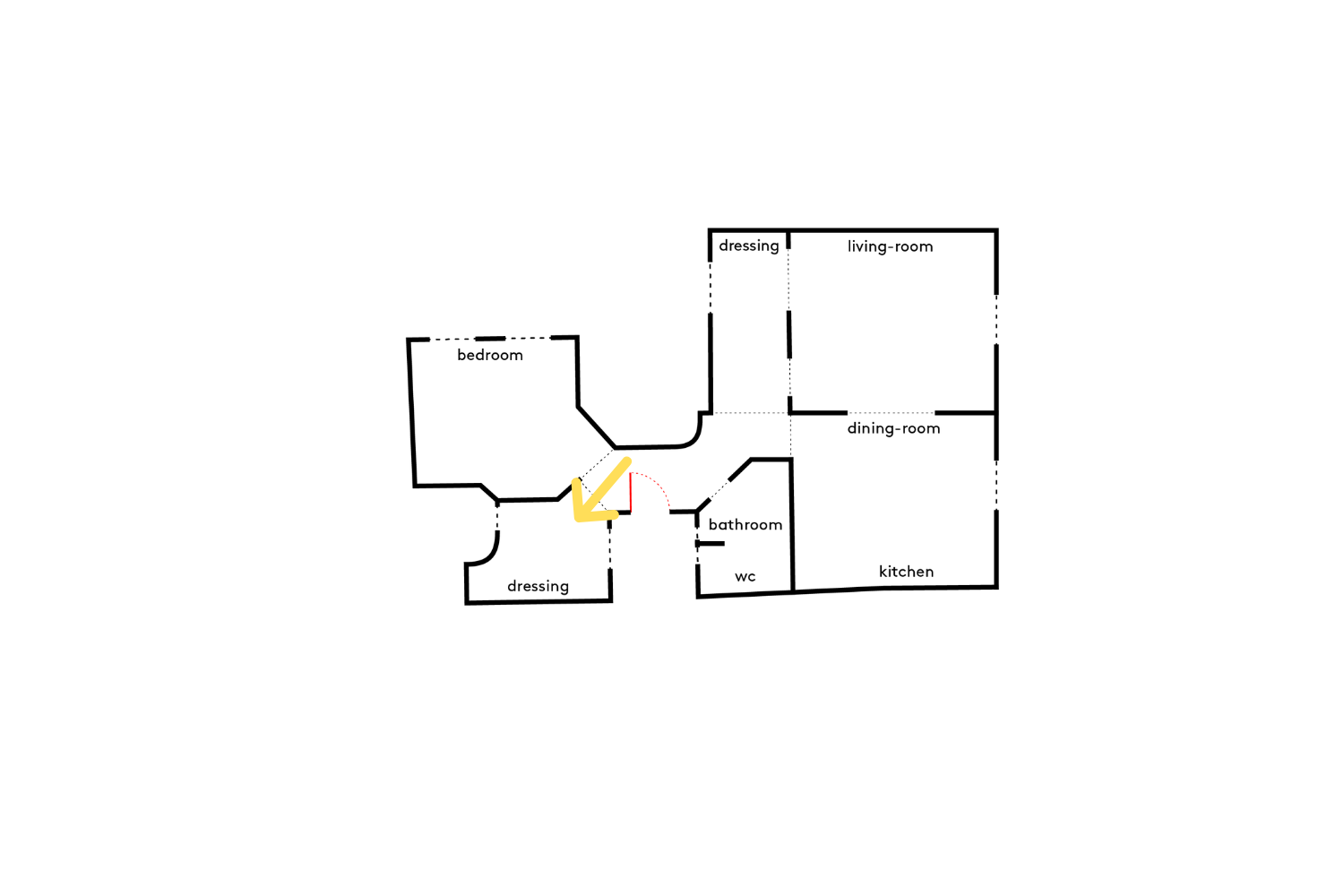 On y retrouve la forme triangulaire. De manière générale, toutes les portes des pièces de l’appartement s’ouvrent sur des triangles afin d’optimiser l’espace.
