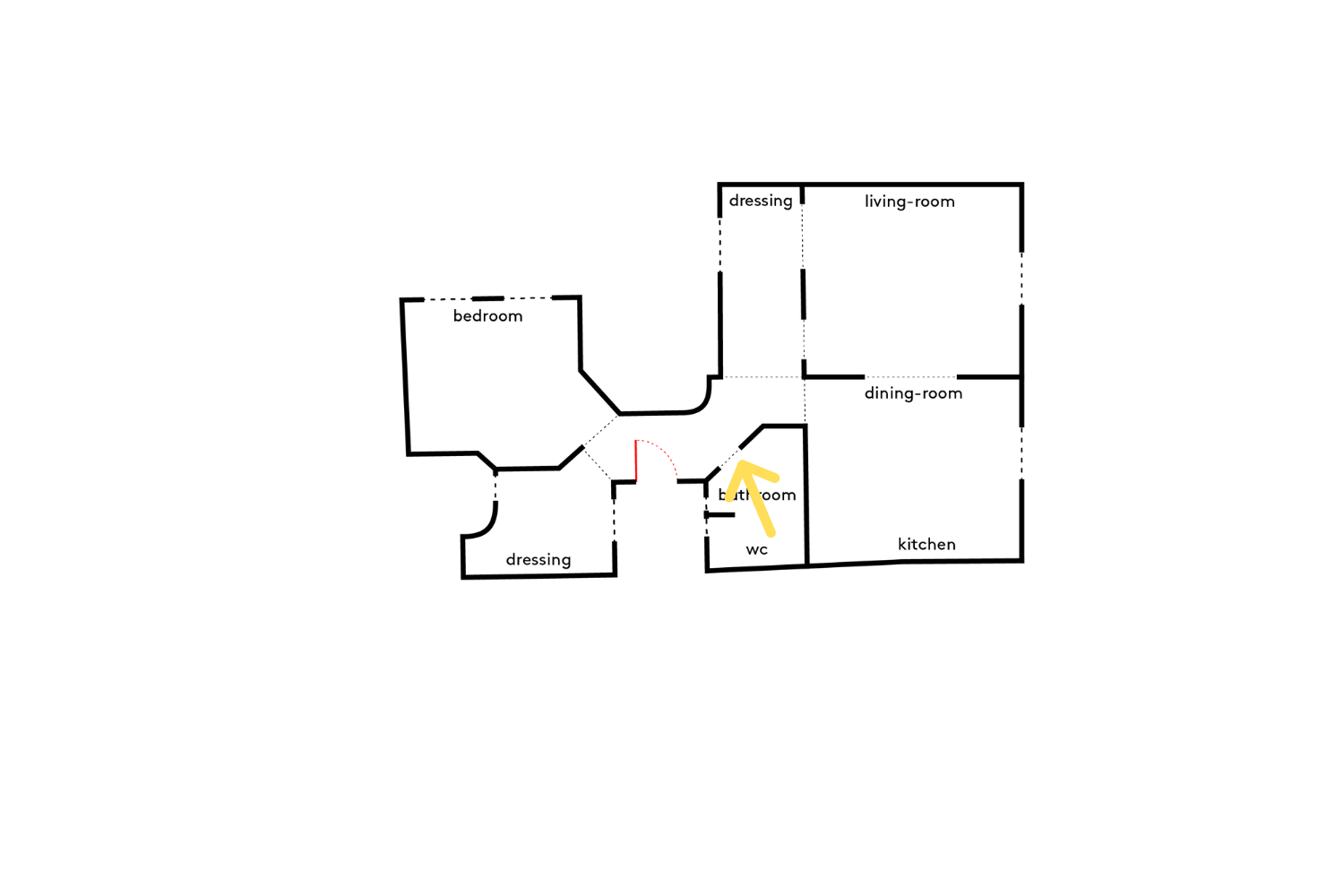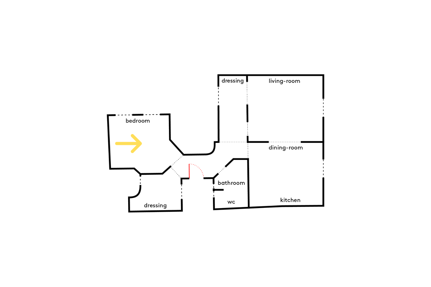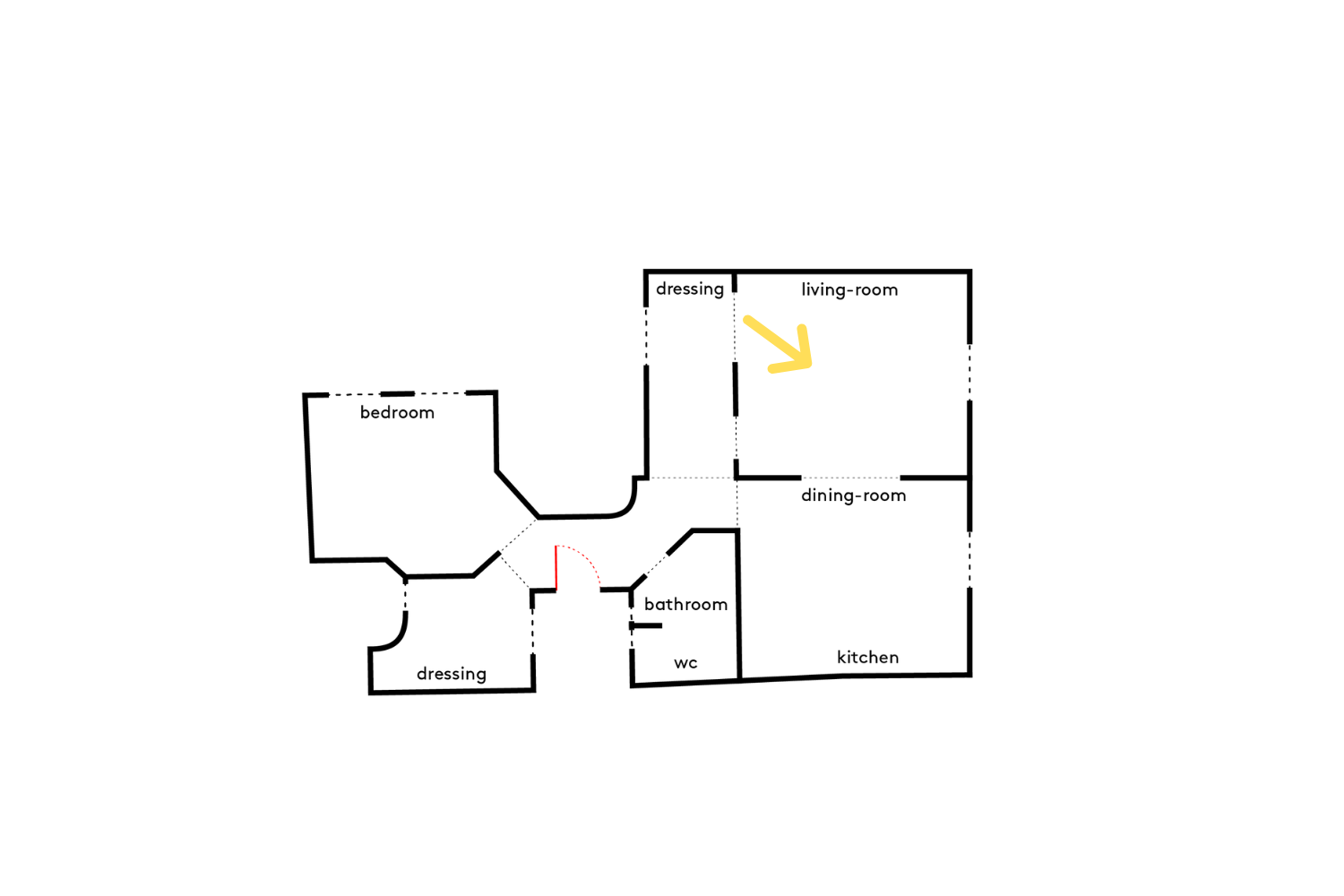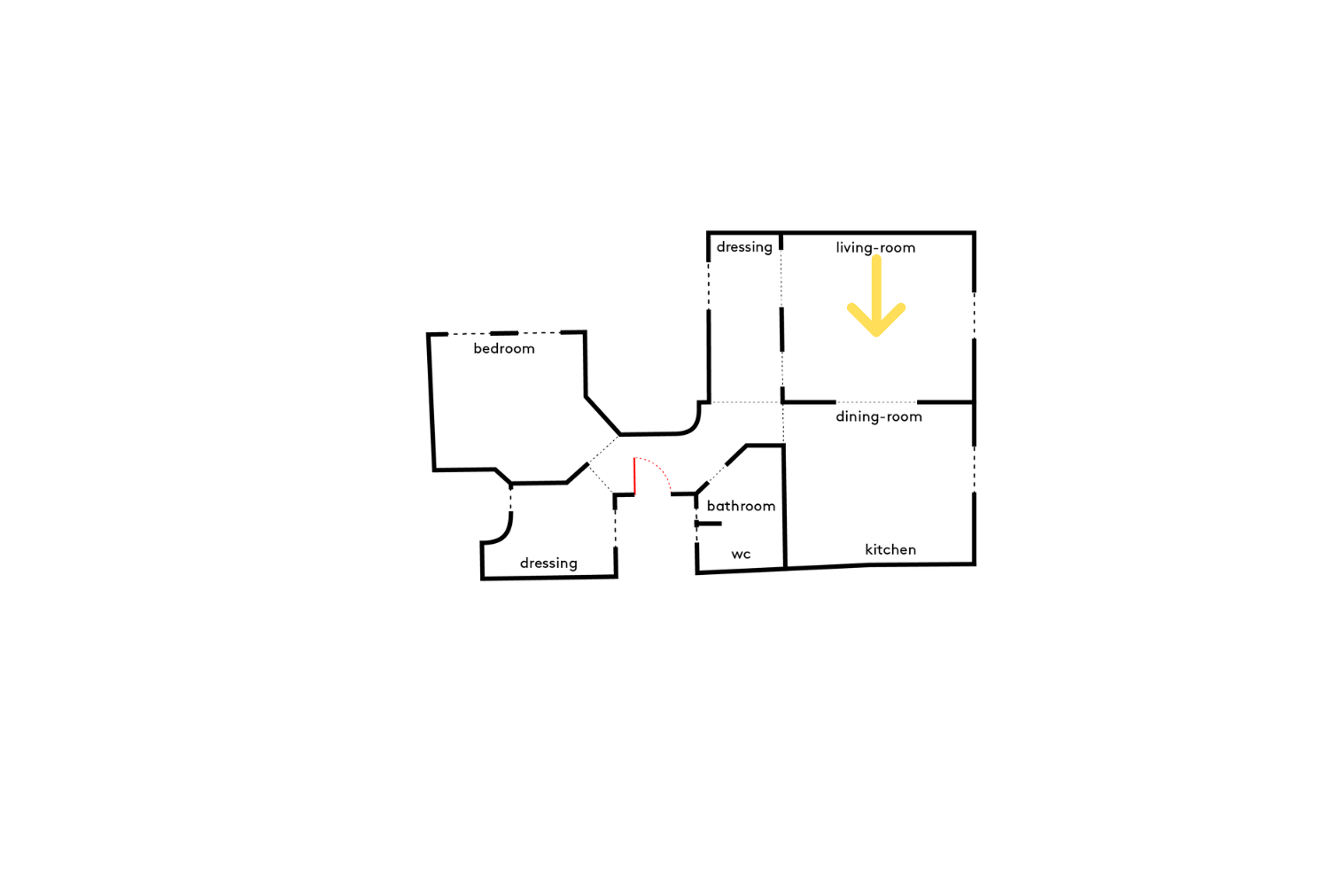 On y retrouve la forme triangulaire. De manière générale, toutes les portes des pièces de l’appartement s’ouvrent sur des triangles afin d’optimiser l’espace.