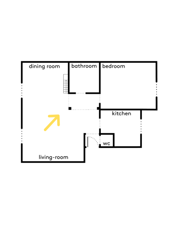 Toutes les cloisons existantes ont été déposées, tout comme l’ancienne mezzanine. Seuls les murs de l’ancienne chambre ont été conservés, servant de point d’ancrage à une nouvelle organisation de l’espace.