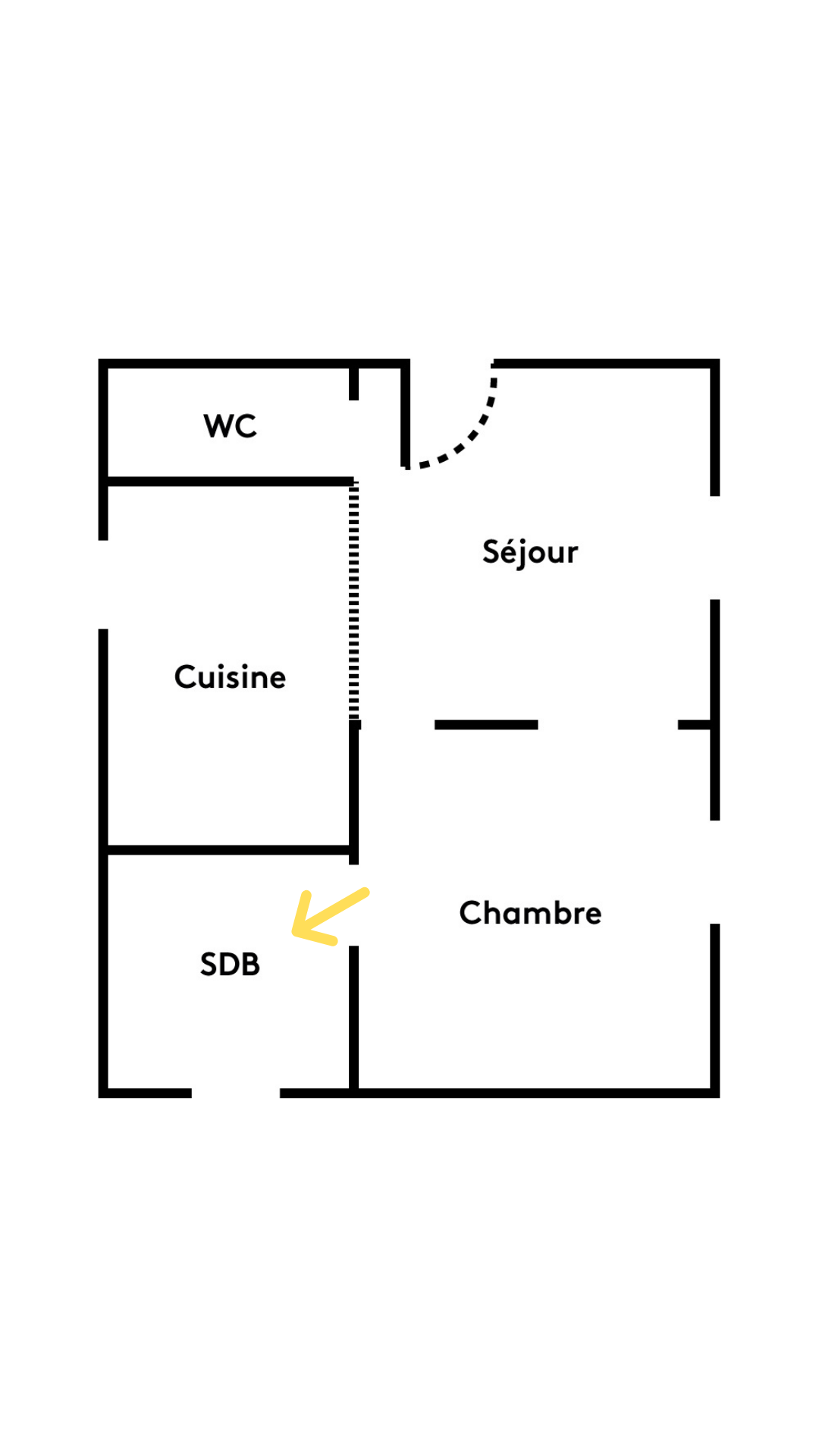 C’est par le coin nuit que l’on accède à la salle d’eau. Elle est elle aussi séparée des autres pièces par des claustras, communes à celles de la cuisine dans un souci d’unité.