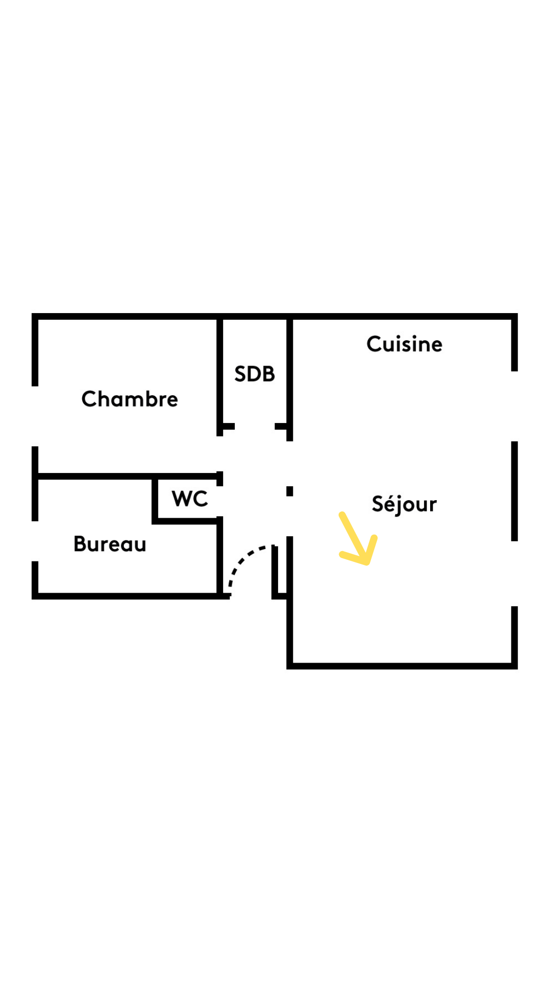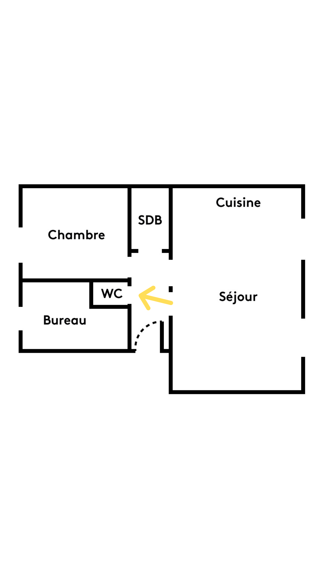 Nous voici dans l’entrée qui dessert les pièces en étoile. Classique ?