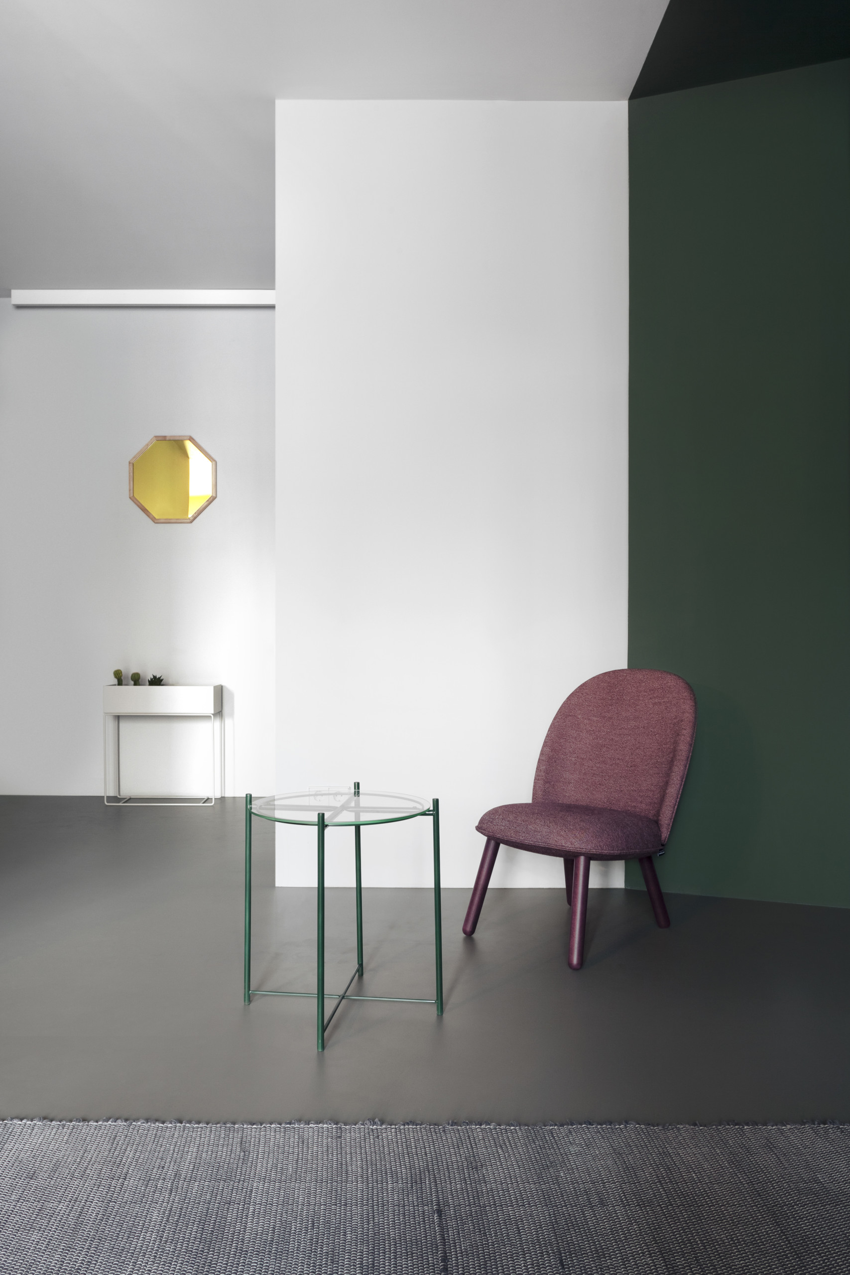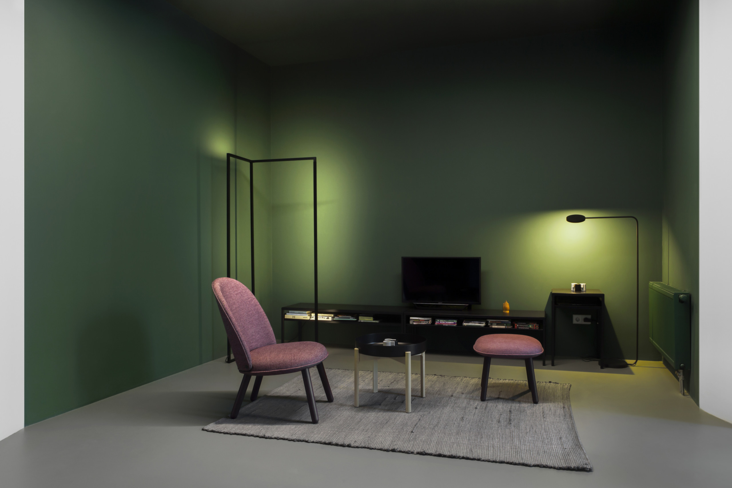 La problématique principale des architectes était le manque de lumière. Celle-ci arrive dans le salon en fin d’après-midi. Par conséquent, les architectes ont habillé les murs et le plafond d’un beau vert sapin. Il nous évoque une balade forestière… où la lumière ne perce que rarement le dense feuillage !