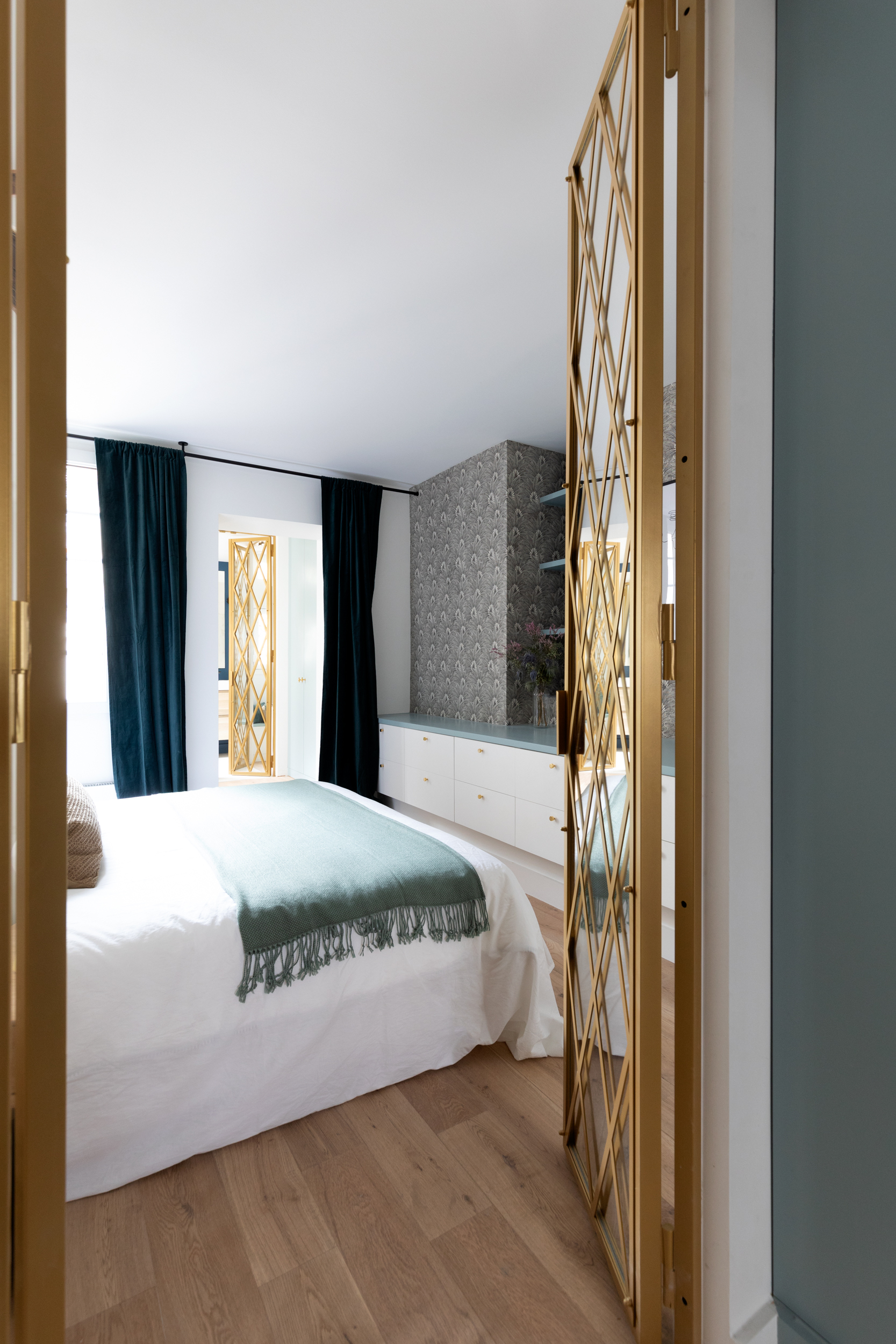 L’ancienne salle d’eau a été divisée en deux pour créer un véritable dressing aux allures de boudoir.