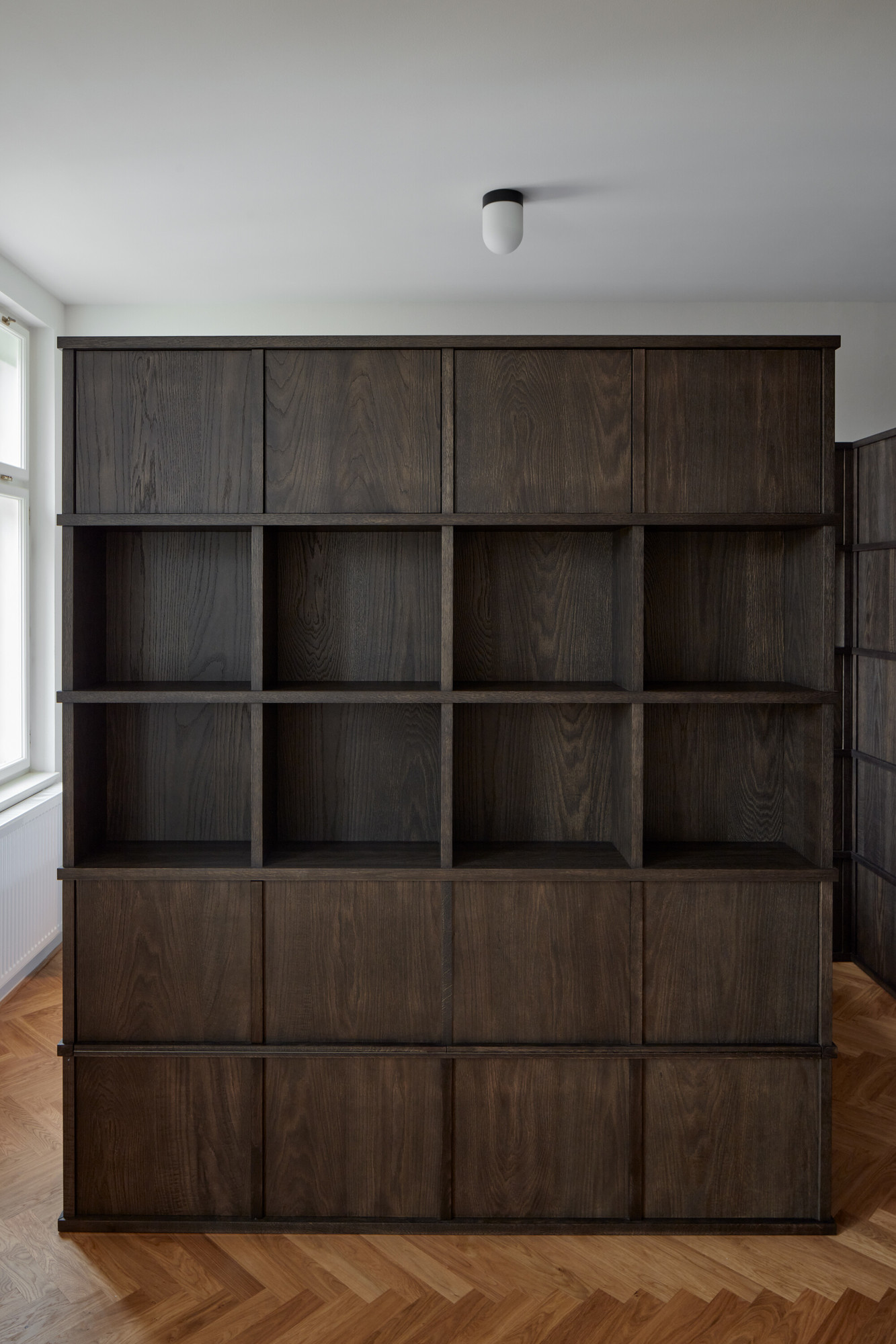 La journée, la lumière caresse l’espace supérieur lorsque les deux battants sont ouverts.