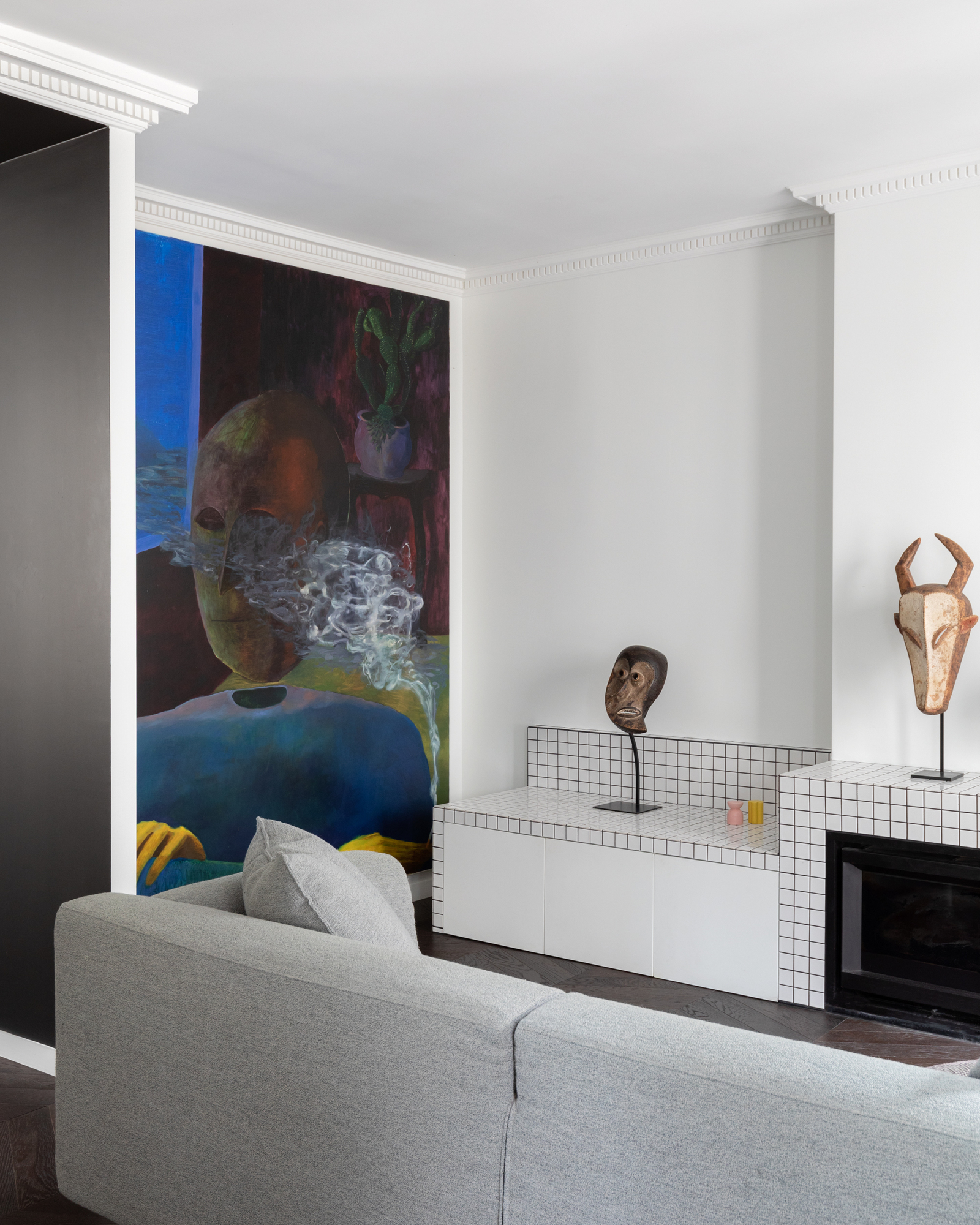 Comme dans une galerie, les murs restent blancs pour laisser la part belle au mobilier et aux oeuvres.