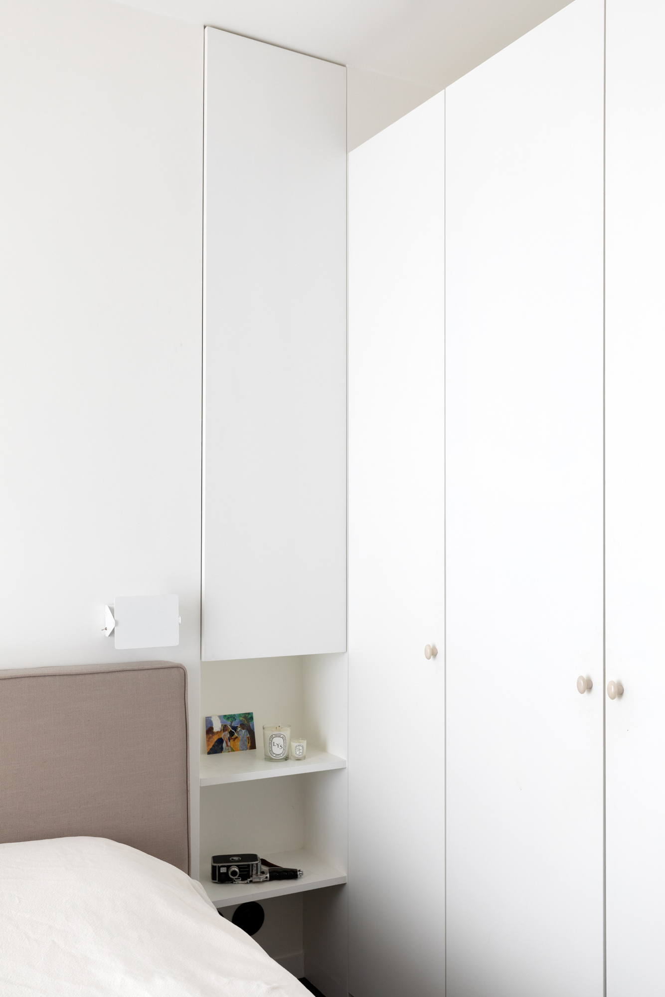 Les chambres jouent aussi la carte de l’épure et de la neutralité… sans pour autant oublier les rangements parfaitement intégrés. Un espace zen à s’approprier !