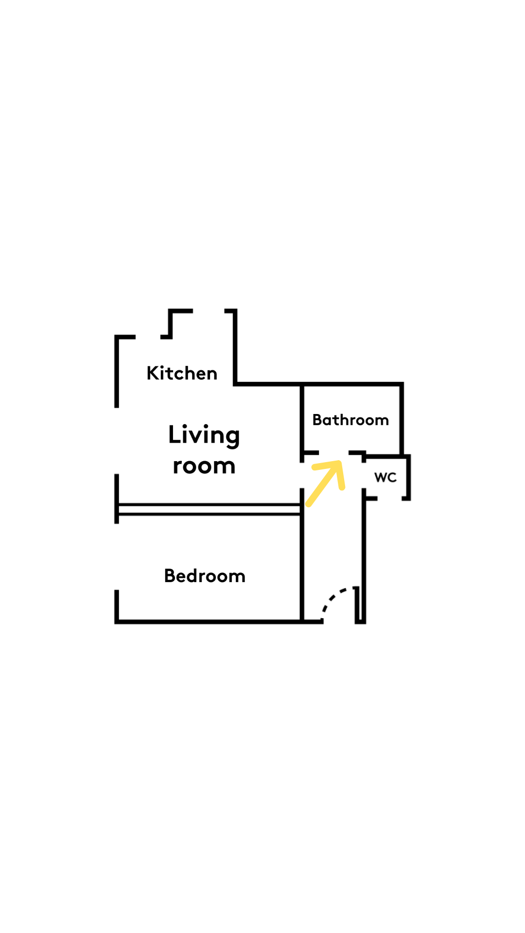 La cuisine adopte un effet color block jusqu’au sol, rendant cet espace parfaitement lisible malgré ses contraintes d’implantation.