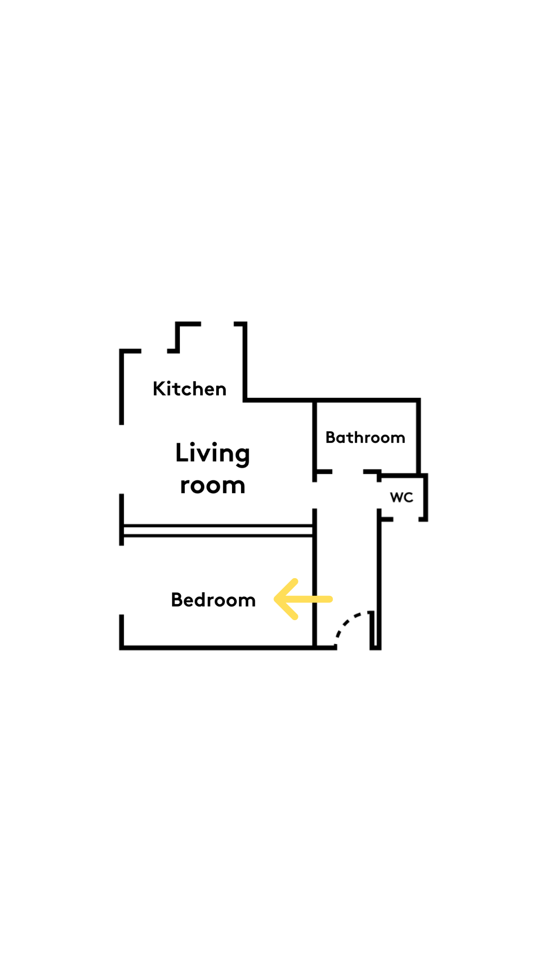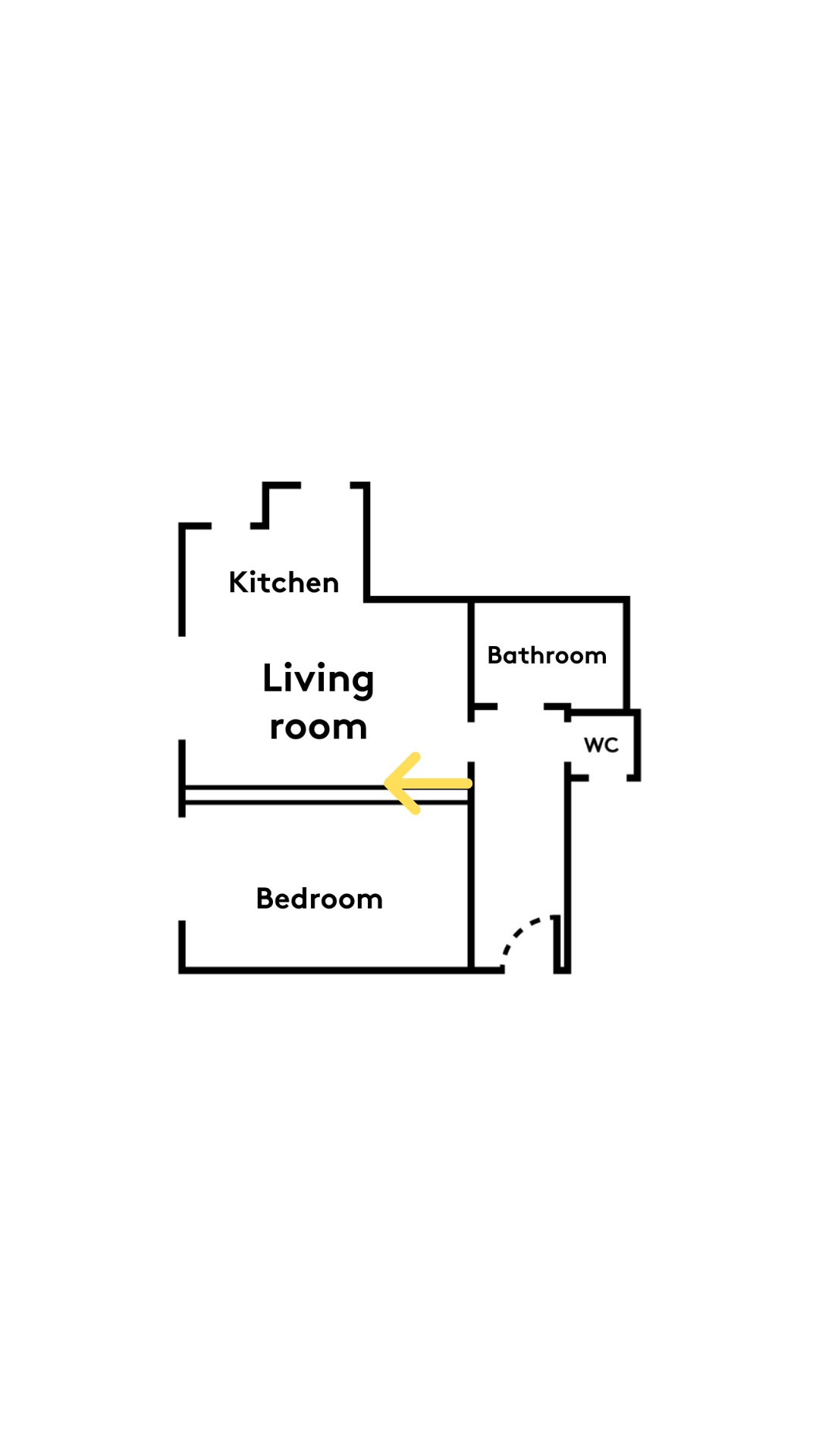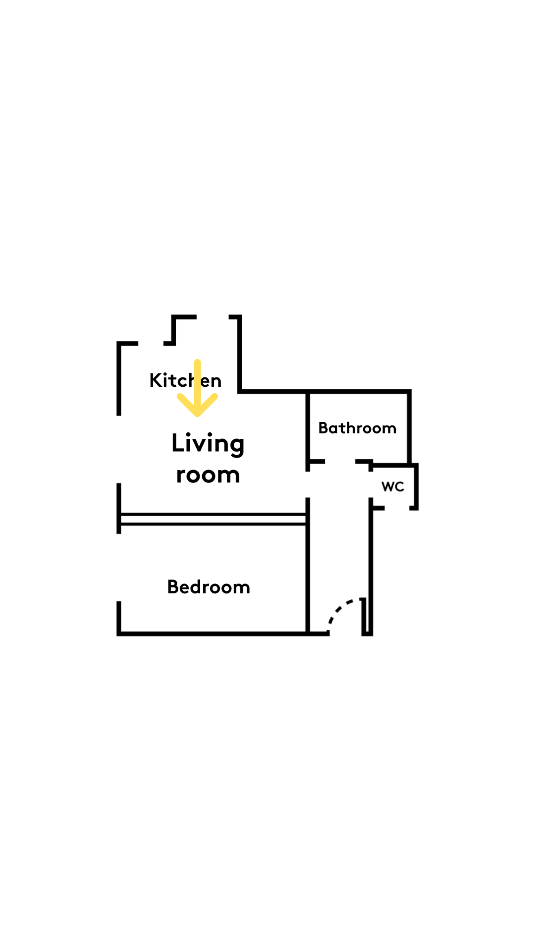 La chambre et le séjour ont été réunis au profit d’une seule grande pièce de vie. Pour autant, chaque fonction a son espace propre, souligné par les matériaux phares du projet !